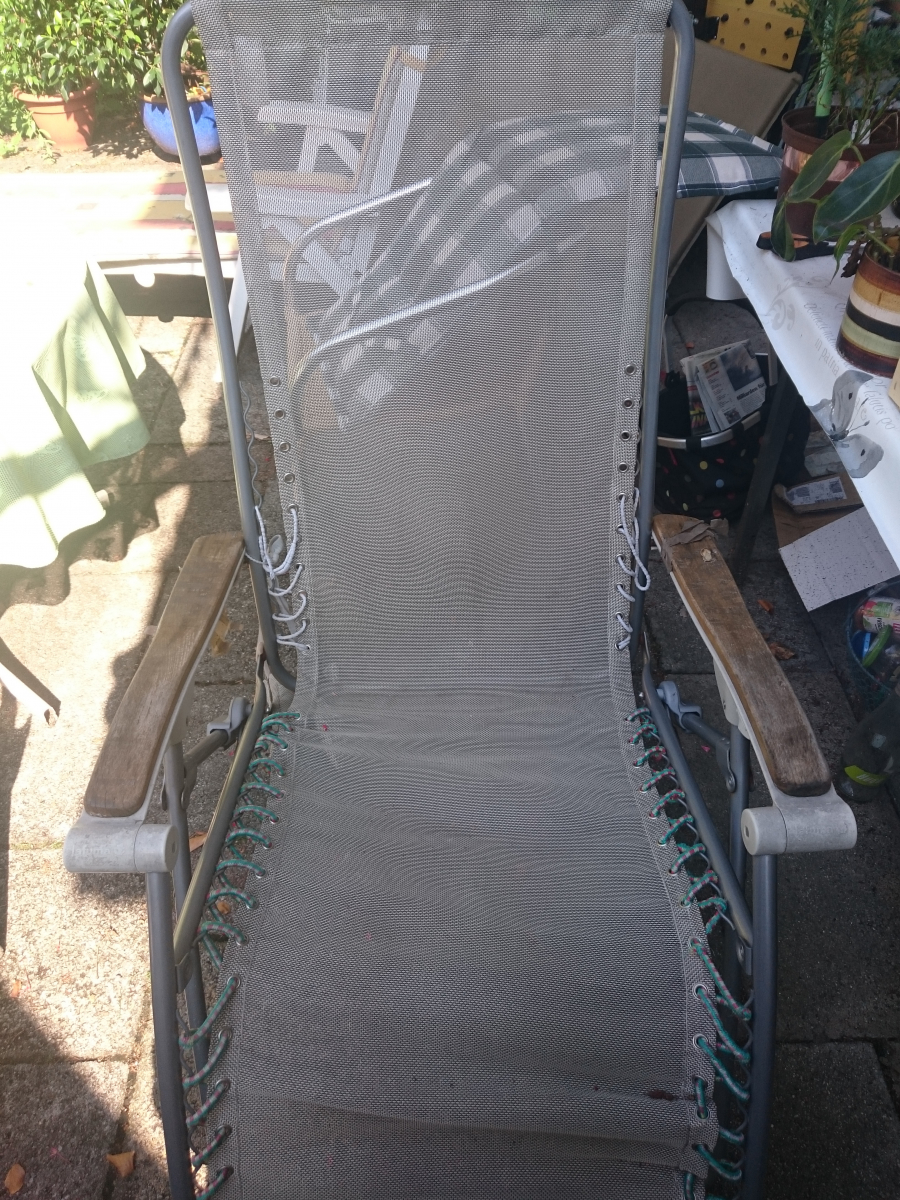 auch wenn es nicht so ausschaut, die Liege ist gar nicht mal so schlecht beisammen. Habe allerdings schon mal die Gummibänder vom Rückenteil erneuert. Und du ahnst es sicherlich, die Armlehnen bedürfen der Überarbeitung 😂🔨🛠🔧🔩🗜💉