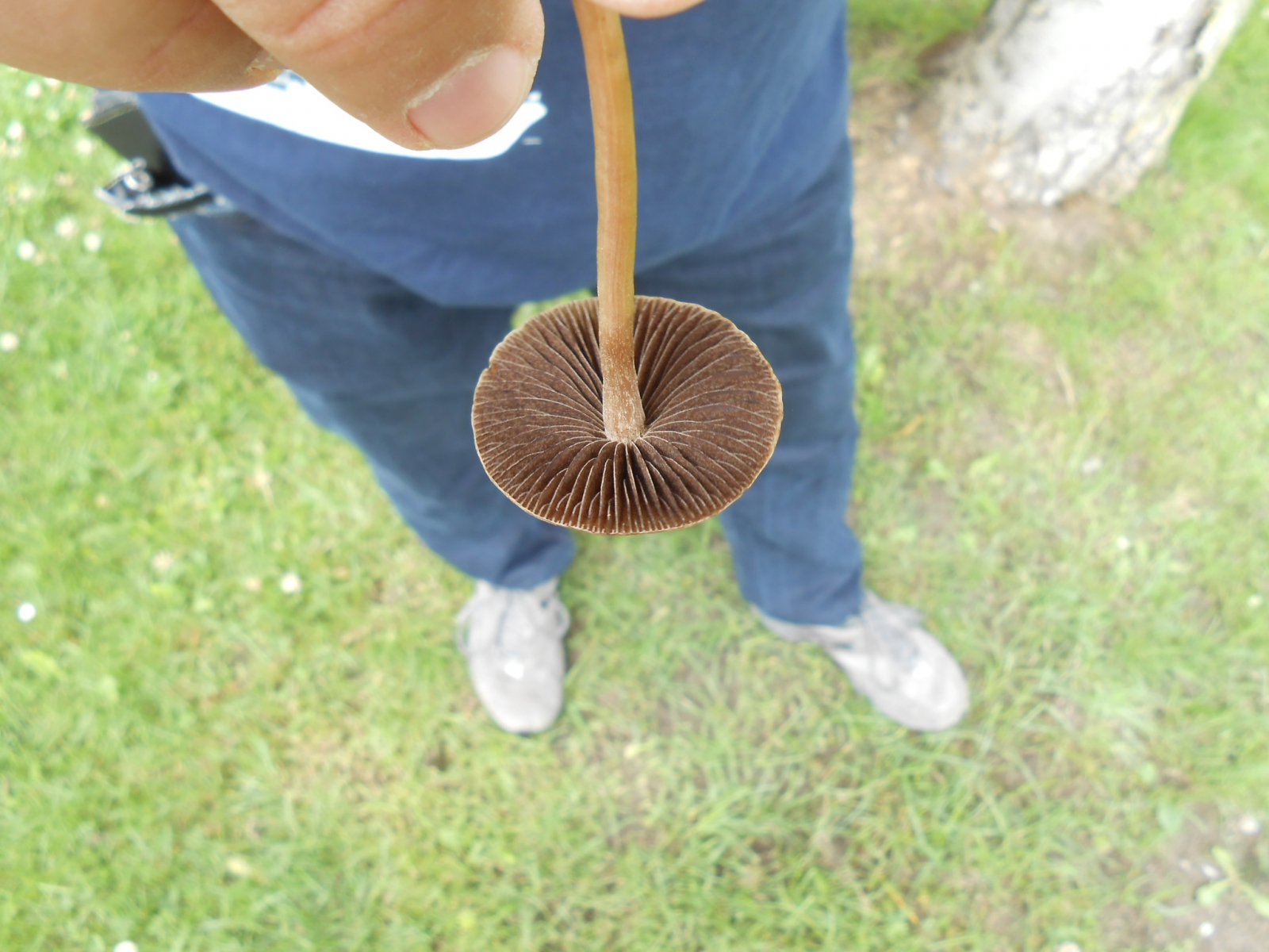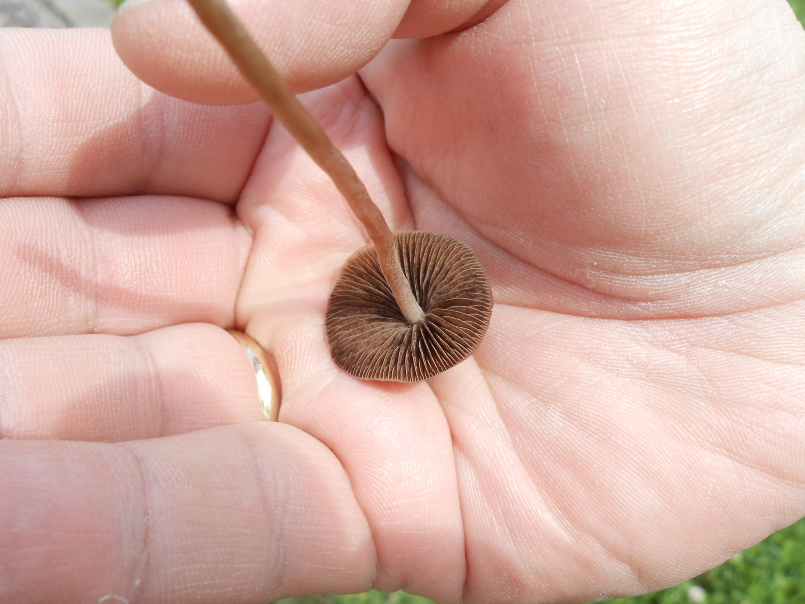 Der mit dem entweder dunkelbraunen (dann = Heudüngerling) oder schwarzen (dann = andere Art der Gattung) Sporenpulver ist eben ein Düngerling, der mit dem helleren, rostbraunen Sporenpulver ist Conocybe lactea (oder wie auch immer das milchweiße SAmthäubchen derzeit heißen muss).