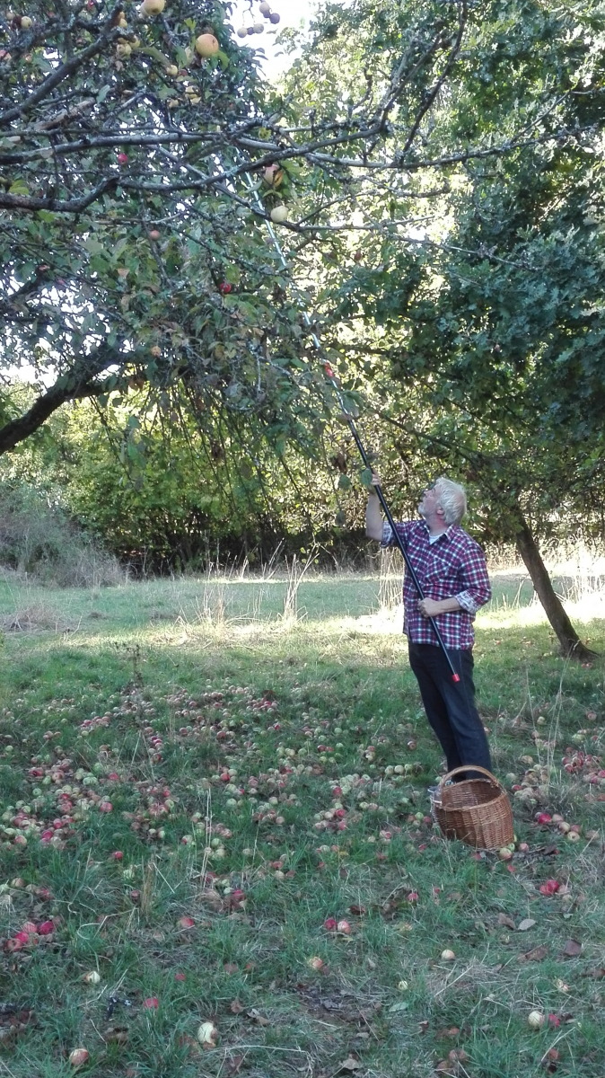 Wir haben uns dieses Wochenende die Zeit damit vertrieben, Äpfel zu pflücken und zu mosten, bzw. wir sind noch dran. Der Saft muss ja zwischendurch erst einmal erhitzt werden, bevor wir ihn abfüllen.