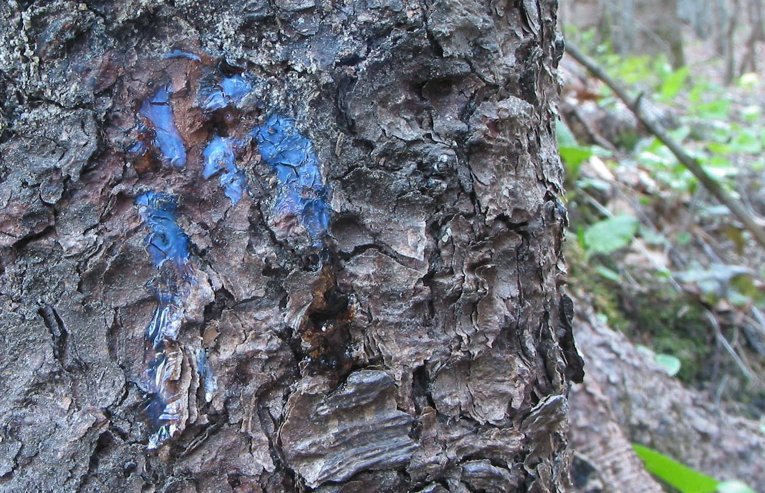 was könnte das sein, auf offenbar Baumharz,sah aus wie blauer Rindenpilz, aber den gibt es hier glaub ich nicht, Ein Bakterienbefall?