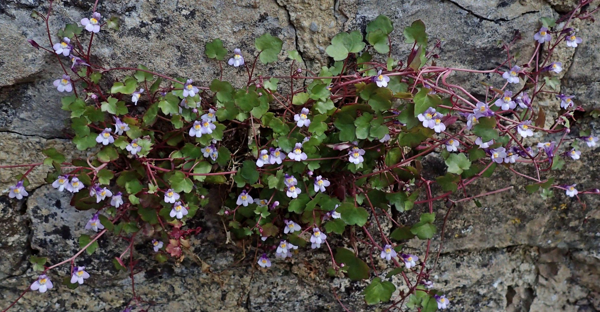 Ich meine natürlich das Zimbelkraut (Cymbalaria muralis), das die Mauer ja sogar im wissenschaftlichen Namen trägt.