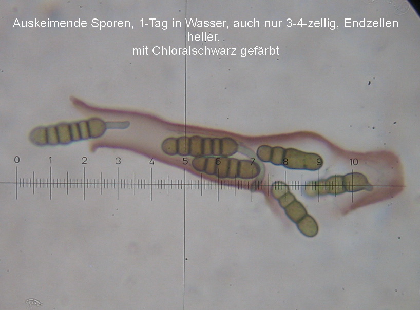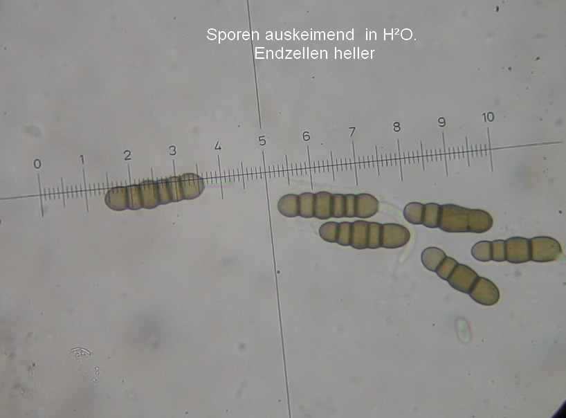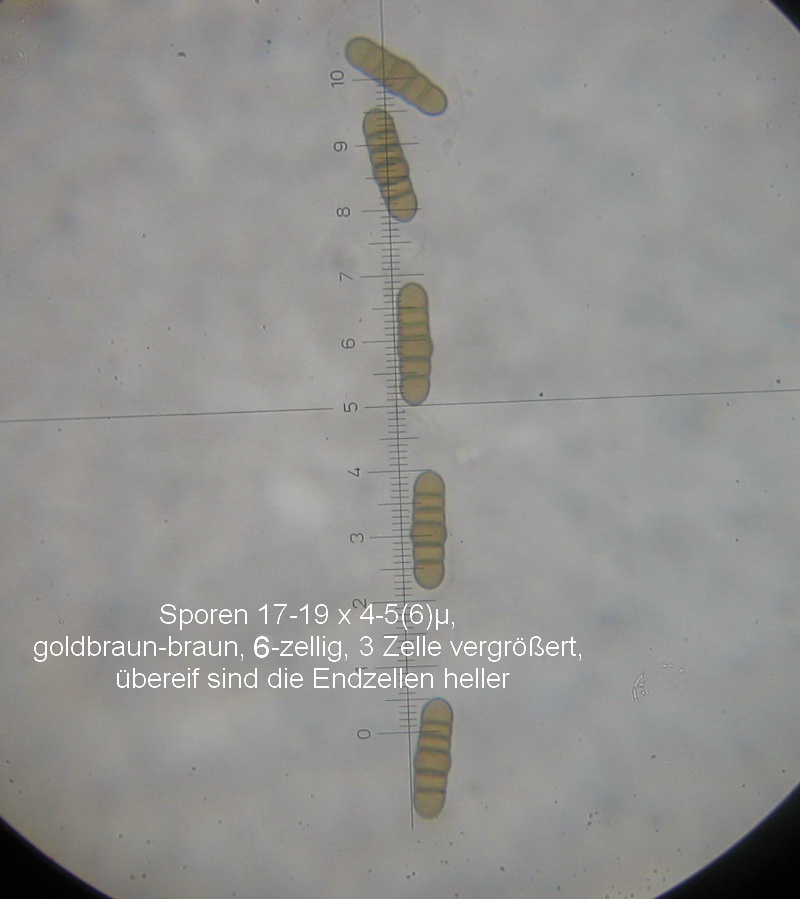 Die ockergelben Sporen sind 5-Fach Septiert und die unreifen 2-3-Fach Septiert (wurde nur kurz beobachtet und weiter bearbeitet).