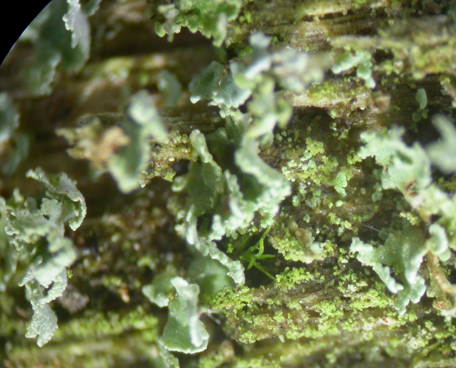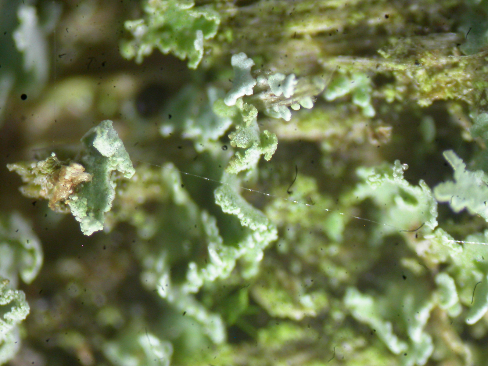 Die chemischen Reaktionen waren: K+, J -, P+ und C unsicher, eher + . Auf den Fotos kann man teilweise die Reaktionen erkennen. Die Vergrößerungen wurden unter dem Bino gemacht. Soweit ich es erkennen kann, hat die Flechte Bortensoralen, oder handelt es sich um Lippensoralen?