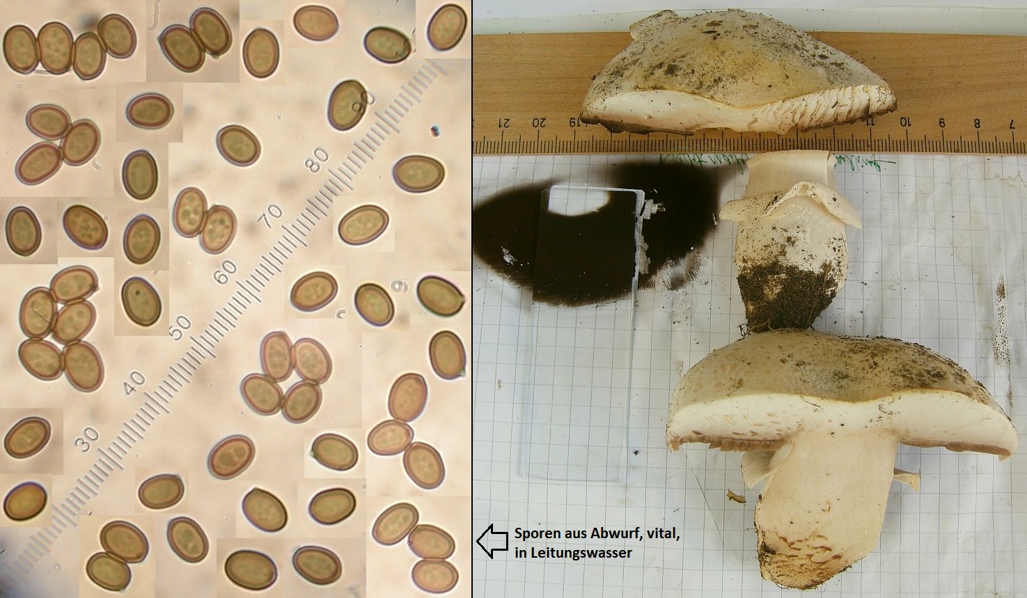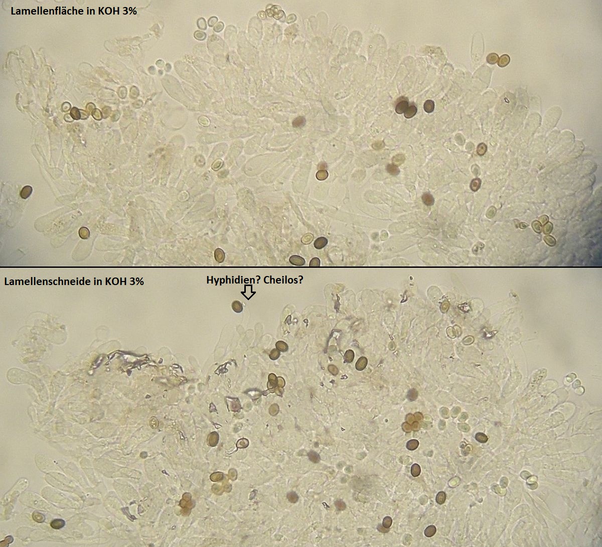 Theoretisch könnte der Falsche Wiesenchampignon - Agaricus pseudopratensis - eine Option sein, aber der sollte wohl eine sterile Lamellenschneide mit Cheilozystiden haben. Hier sind keine wirklichen Cheilos zu finden, auf der Lamellenschneide sind Basidien, Basidiolen und basidiolenartige, sterile Elemente (teils auch wie kurze Hyphidien wirkend) vermischt.