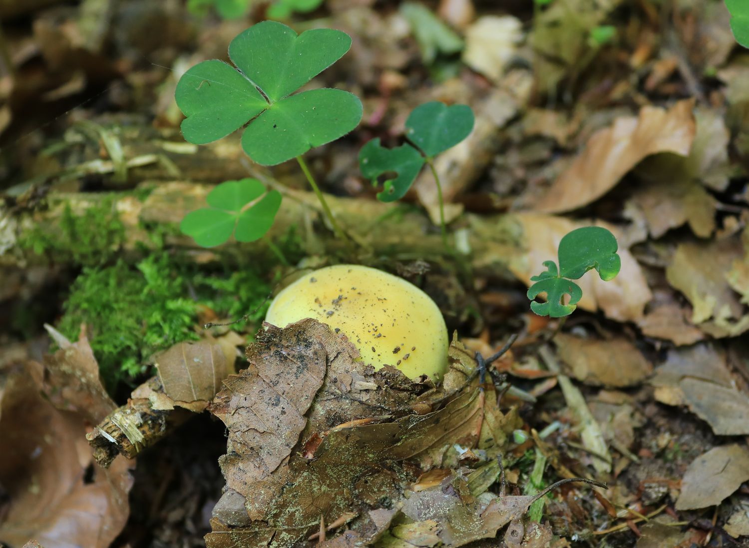 Derselbe (Speise?-)Täubling und ein Riesenexemplar des Grünenden Pfeffer-Milchlings (Lactarius glaucescens):