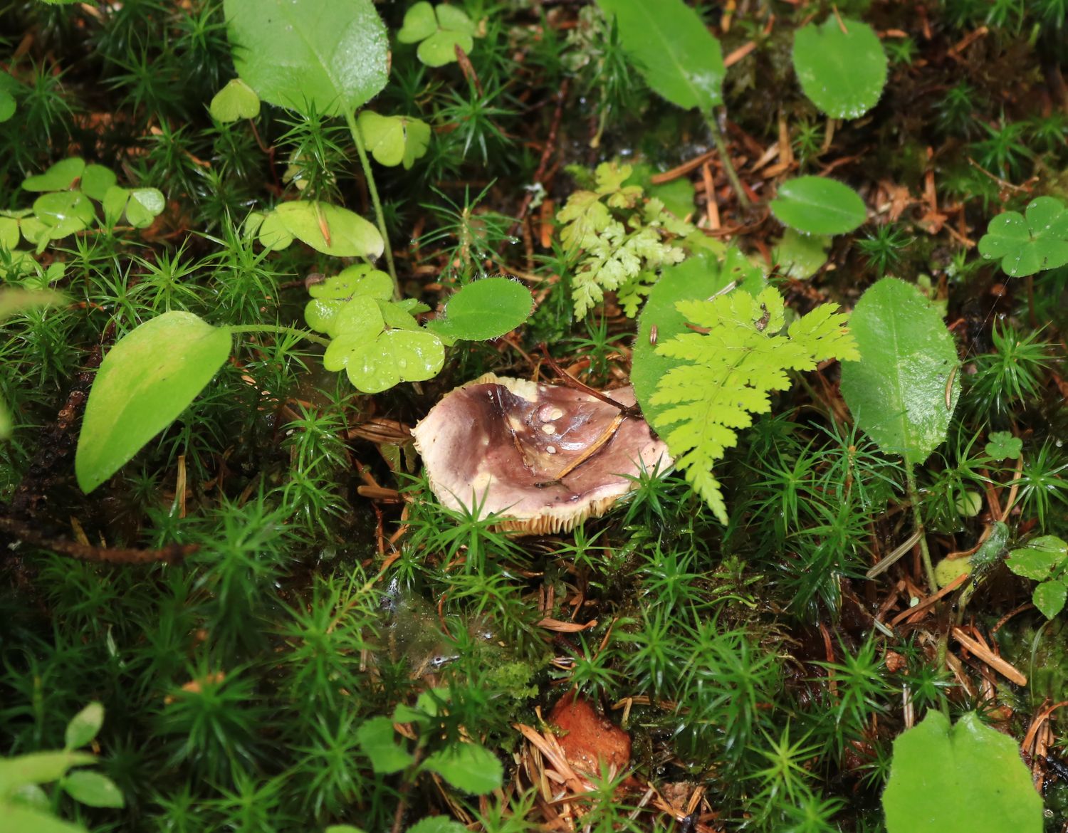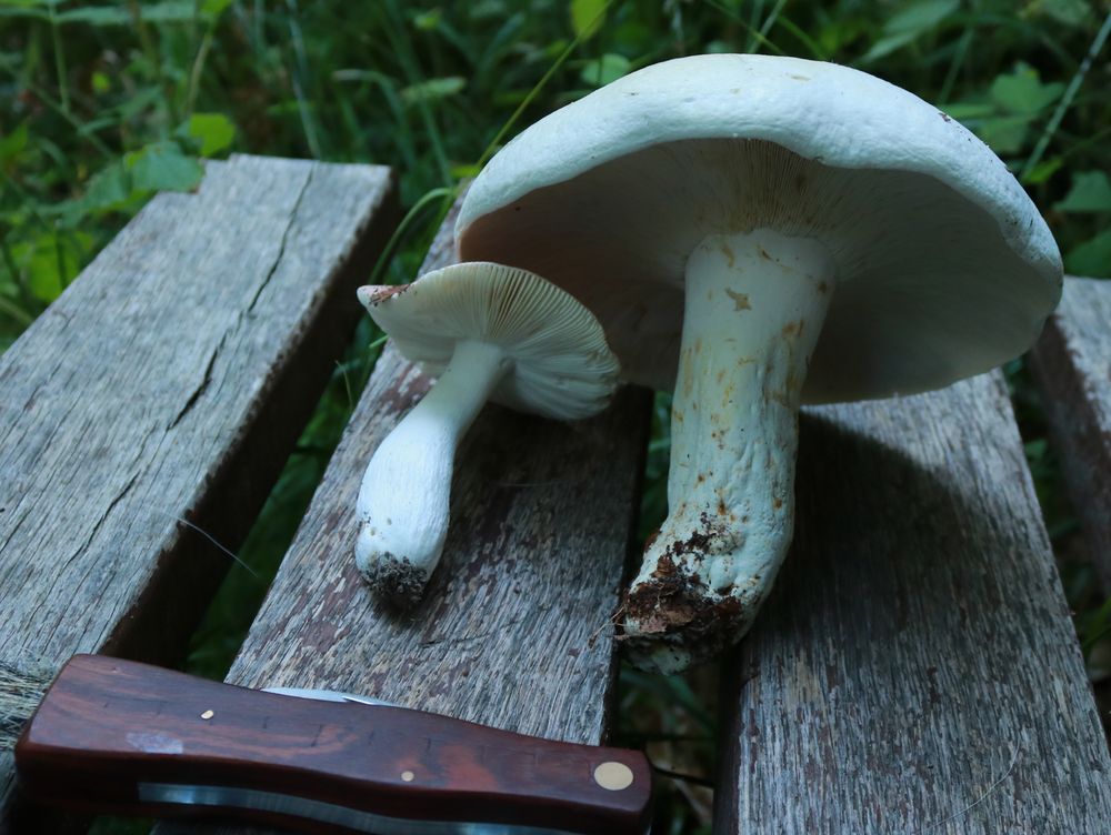 Derselbe (Speise?-)Täubling und ein Riesenexemplar des Grünenden Pfeffer-Milchlings (Lactarius glaucescens):