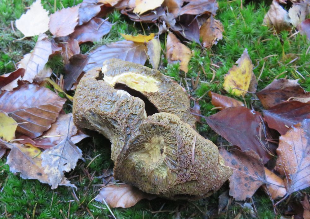 Und ja, das mit der Restunsicherheit kenne ich. Wie gesagt, ich schleiche da sicher schon 3-4 Jahre um die genannten drumrum. Habe sie hunderte male gefunden, angeguckt, beschnuppert und dann doch wieder liegen gelassen. Den grauen Schwefelkopf traue ich mir ab jetzt aber zu. Habe extra von diversen Stümpfen Exemplare in allen möglichen Ausprägungen mitgenommen und zumindest den grünblättrigen als Verwechsler auch angetroffen (Flämmlinge können von oben auch manchmal täuschen, aber da hilft der Blick unters Röckchen). Gerade jetzt im Spätherbst kommen die auch öfters vor, habe ich das Gefühl, so dass es sich schon lohnt auch mal die vermeintlichen ollen Schwefelkopf-Stubben anzulaufen. Auffällig finde ich den häufig stämmigeren Habitus als bei den 2 häufigsten Verwechslern. Einige ältere Schlappen, die dableiben durften hatten Hutdurchmesser an die 10cm. Da käme fix einiges zusammen. ;)