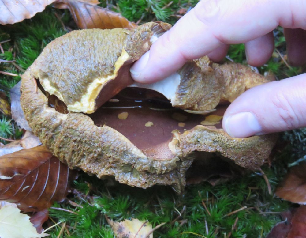Der Tag war ein Highlight hier (letzter Waldgang gestern - nix) und dem Tip eines anderen Forums-Mitglieds zu verdanken. Da kommt vielleicht irgendwann noch ein Beitrag mit schöneren Bildern und mehr Arten, als ich bei meinem "Schnell-noch-vor-der-Arbeit-Besuch" ablichten konnte. Die Happen für diesen Thread: Rubroboletus rhodoxanthus/satanas, Suilellus mendax, Cortinarius sodagnitus.