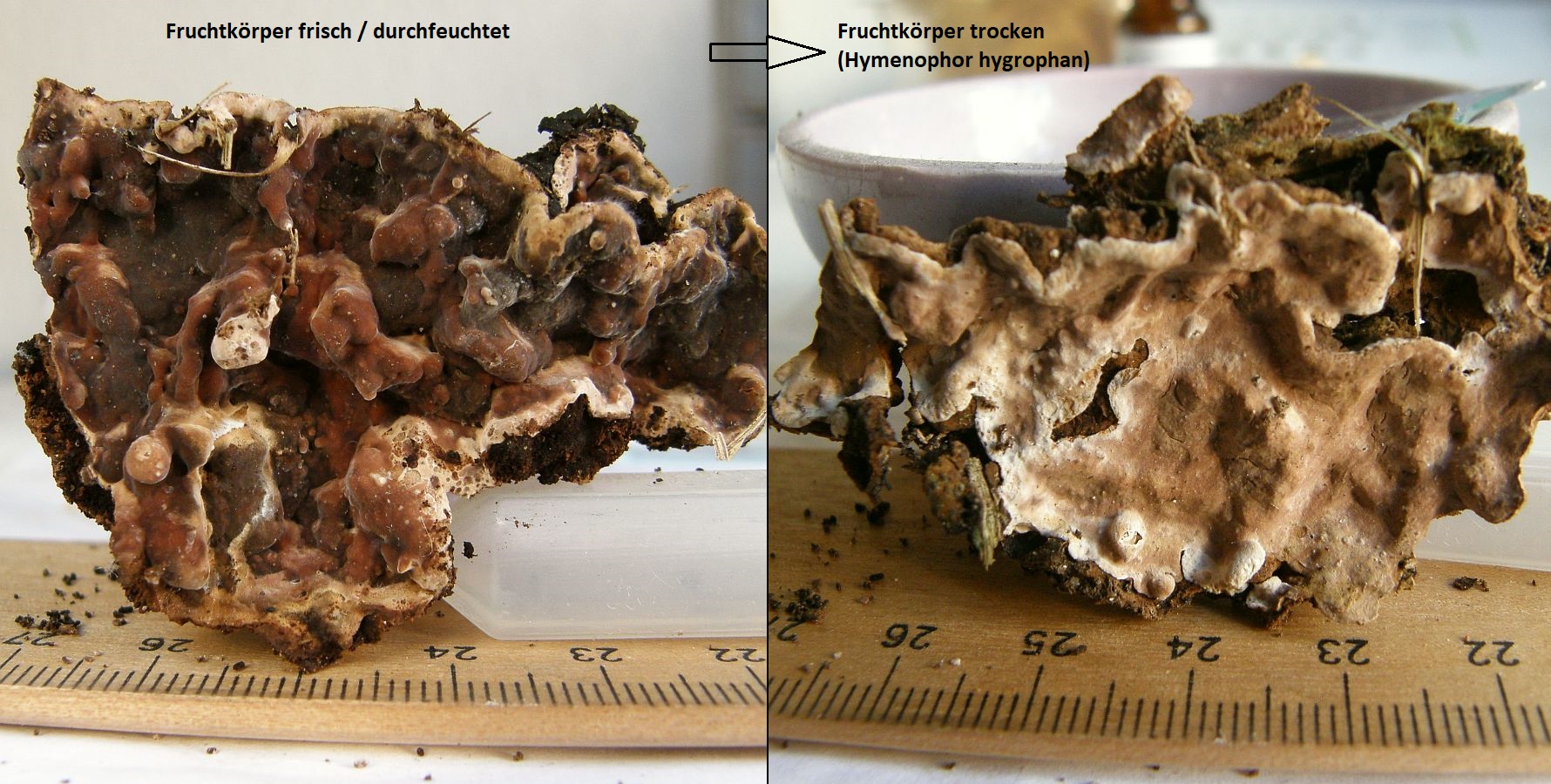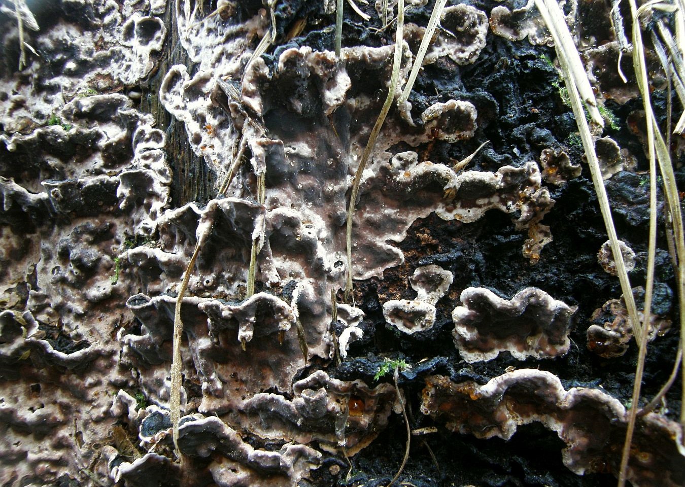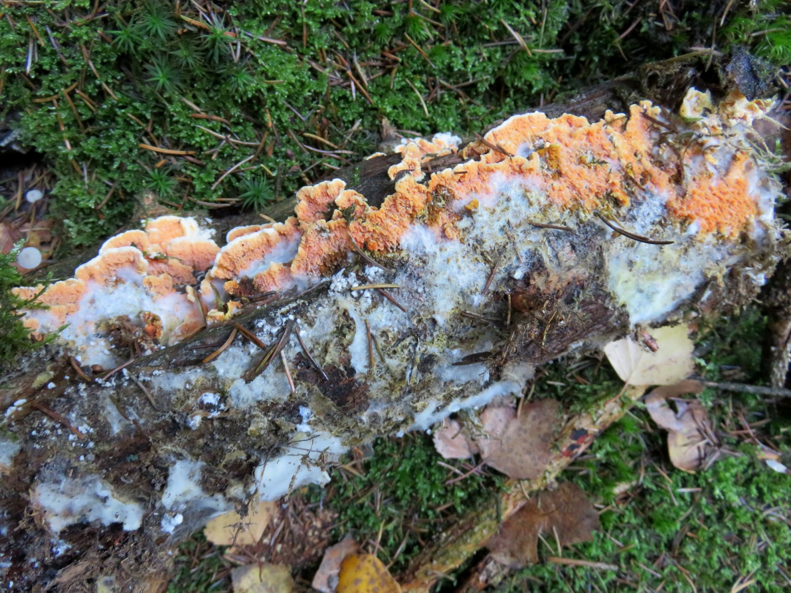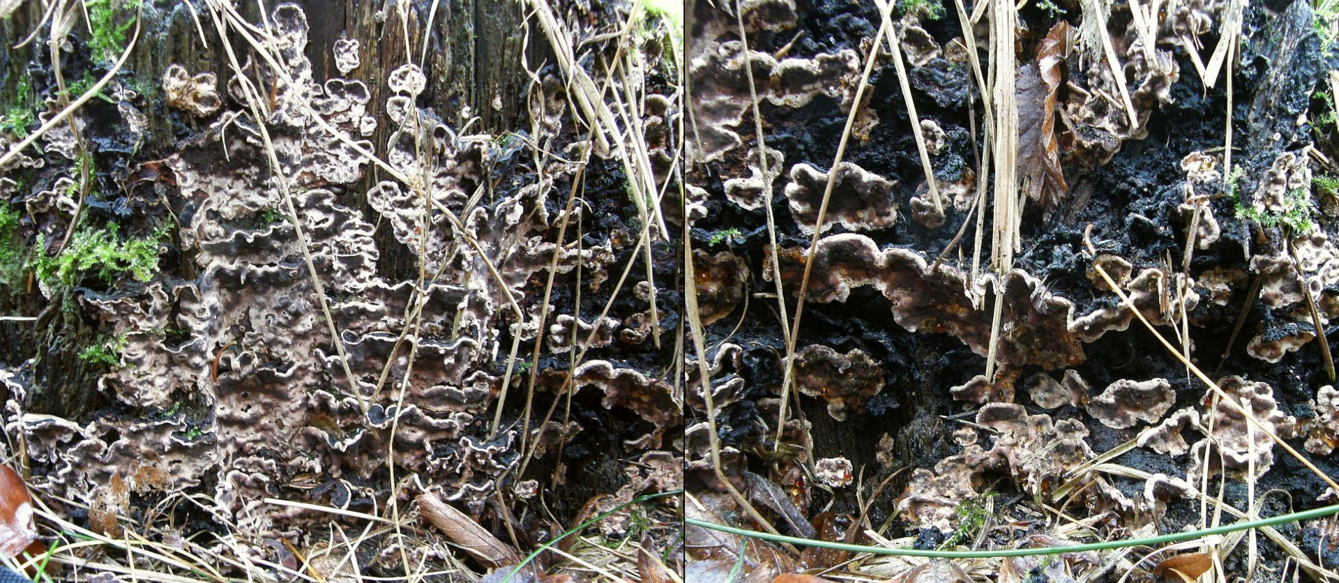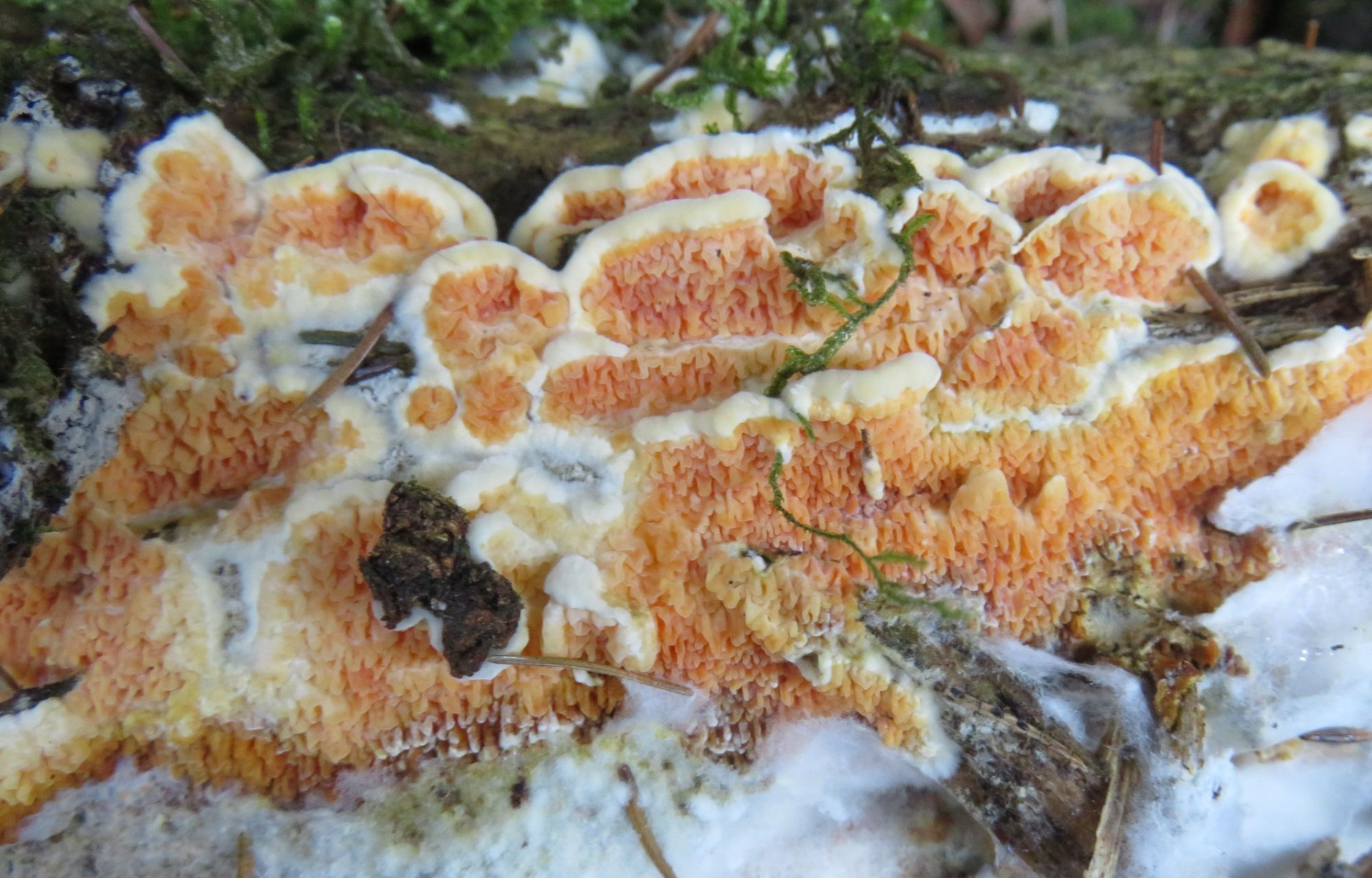 Eine davon war der schöne Kiefernfältling, Leucogyrophana mollusca: