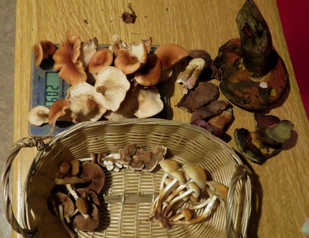 Die kleine Ausbeute an essbaren Pilzen bestand hauptsächlich aus zwei Flockis und aus Fuchsigen Rötelritterlingen (Erstverkostung für mich). Diese ergaben zusammen ein halbes Kilo.