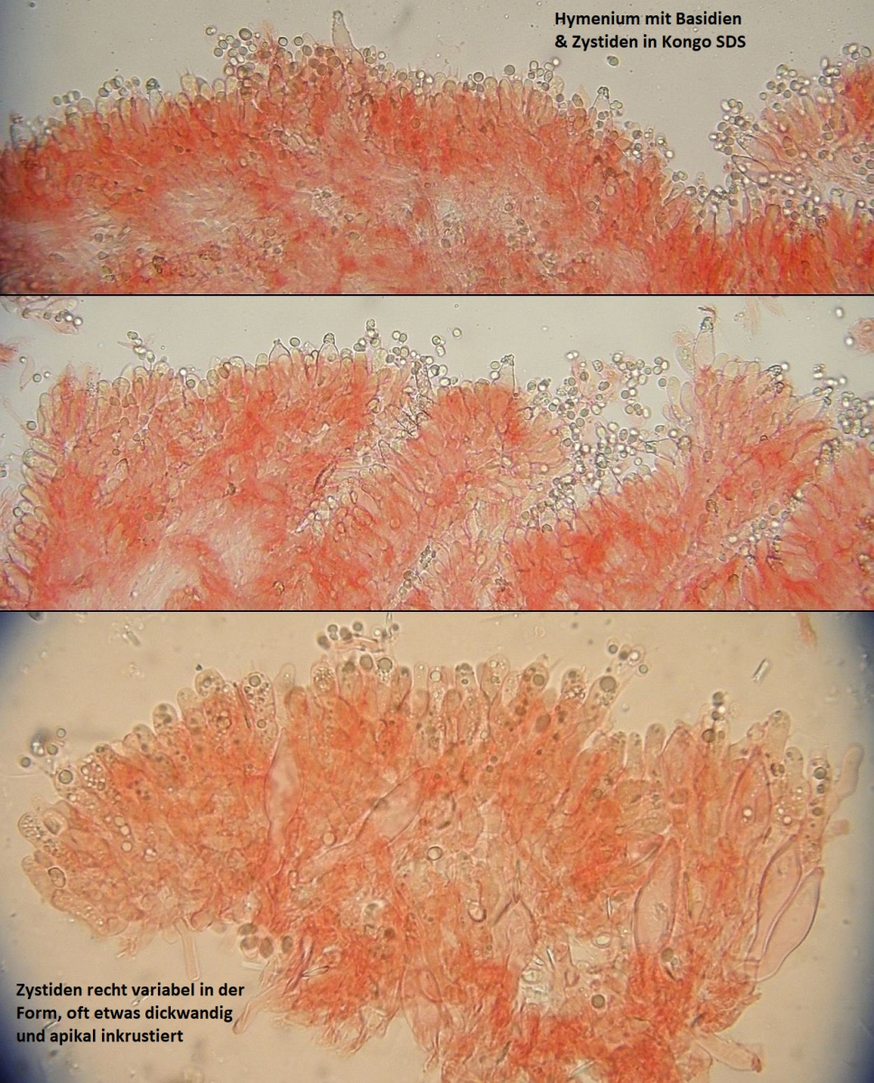 Weil's hübsch ist und der Fruchtkörper innerlich viel intakter als es von außen aussah mit Mikrodoku. Schicke Zystiden...