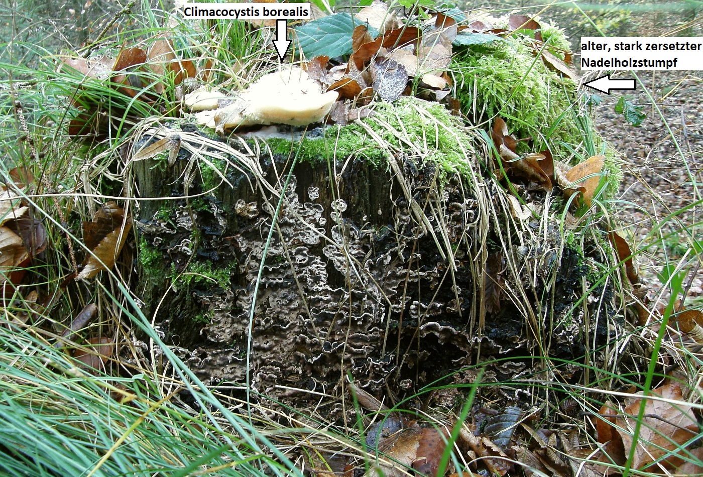 Da ergänze ich auch noch wass, und zwar den "Nerdischen Porling" (Climacocystis borealis):
