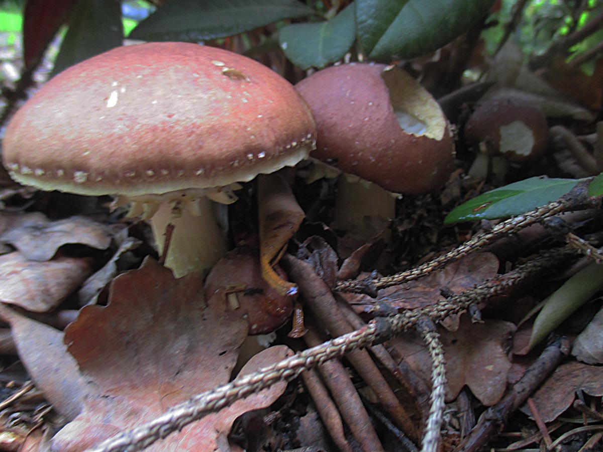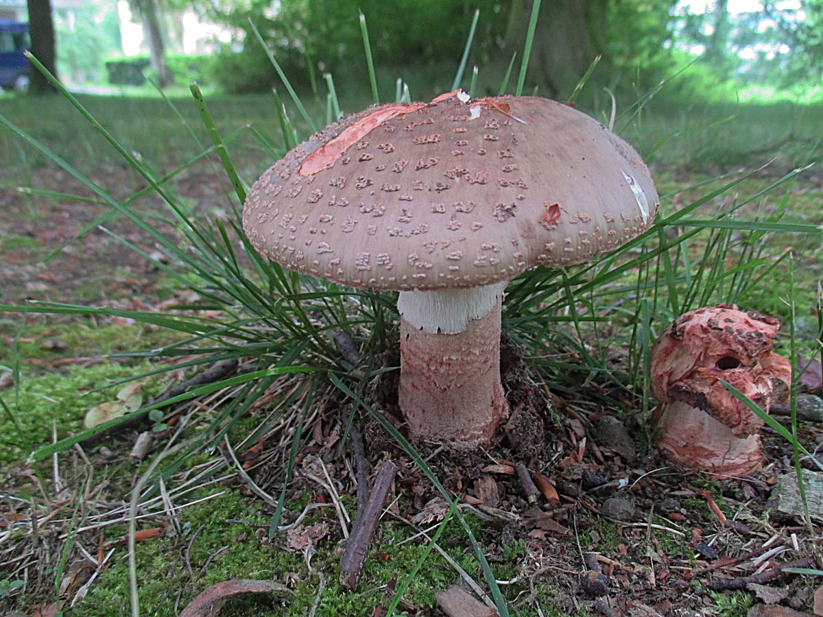 das Problem liegt an meiner Knipse. Das ist keine Rötung sondern eine Bräunung und die riechen wie Graue Wulstlinge. Perlpilze kenne ich nun schon seit 50 Jahren. Das sind keine.
