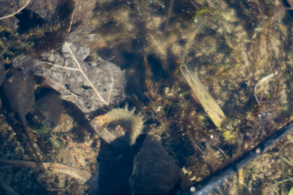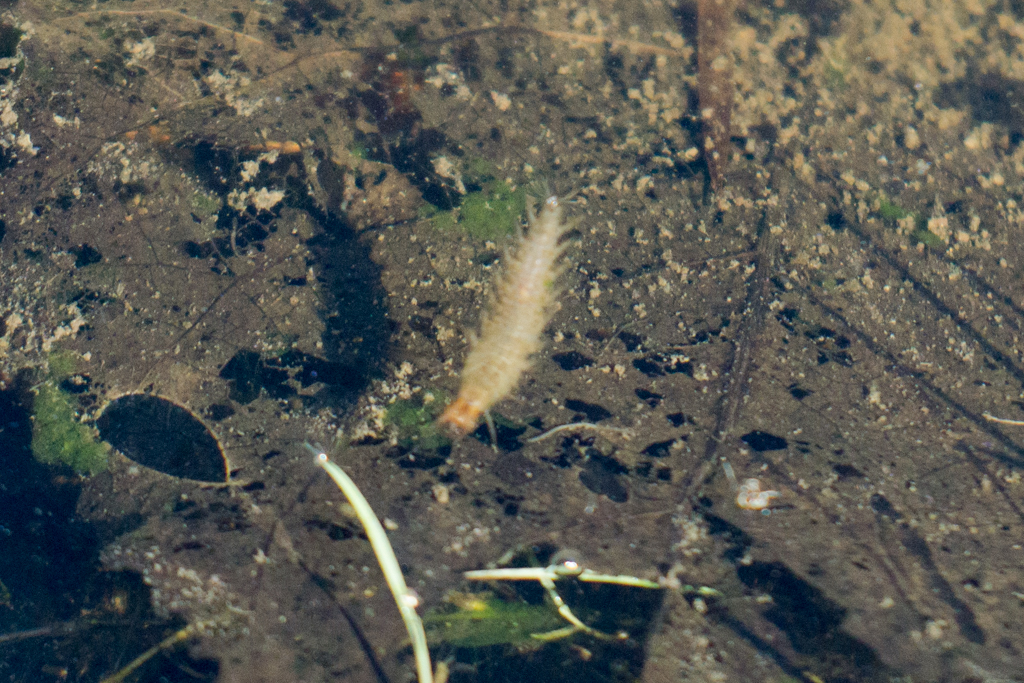2. Leider schlechte Fotos. Hab's einfach nicht hinbekommen das kleine Dings unter Wasser mit der Sonne und meinem Altglas scharf zu bekommen. Es war in einem kleinen Naturtümpel mit tausenden Kaulquappen, Spitzhornschnecken und einigen Teichmolchen. Ist das eine Käferlarve? Oder was ganz anderes? Jemand eine Idee?