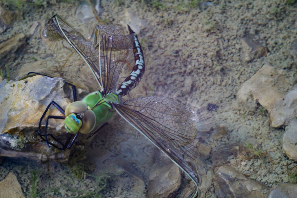 3. Eine Großlibelle. Ist das die grüne Mosaikjungfer? Sie hatte sich leider die Flügel abgeknickt und konnte daher nicht mehr wegfliegen, weshalb ich sie eine Weile fotografieren konnte. Sind also noch mehr Fotos vorhanden, falls noch etwas benötigt wird.