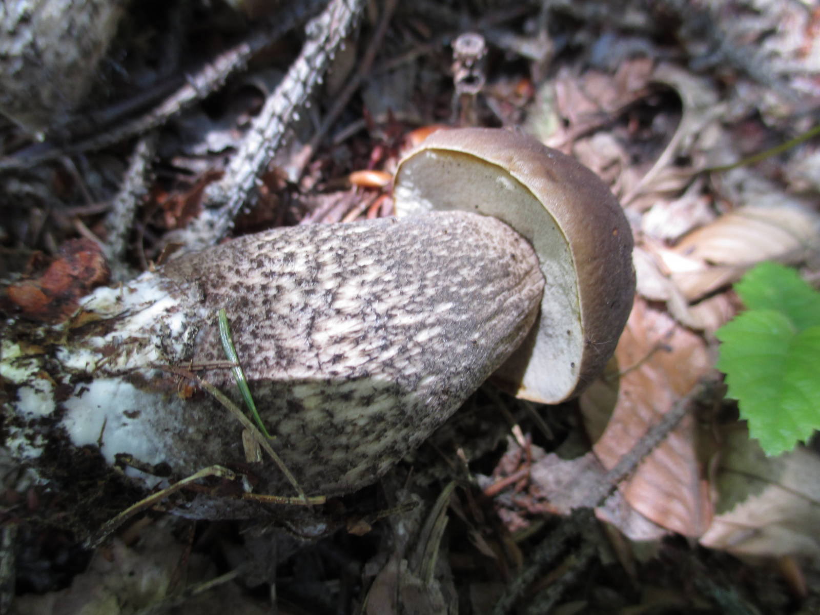Aber um mal ein Beispiel zu nennen: Nach der Arbeit wird aus Leccinum scabrum eine Sammelart, die auch Pilze mit an der Stielbasis blauender Stielrinde beinhaltet. Das wäre so ein Punkt, den ich für sehr zweifelhaft halte. Was ich unter Leccinum scabrum im strengen Sinne verstehe, verfärbt nicht. Höchstens ein kleines bisschen rosa im Hutfleisch und oberen Stieldrittel, aber niemals danach schwärzend, niemals violett und vor allem niemals blau irgendwo an oder in der Stielbasis.