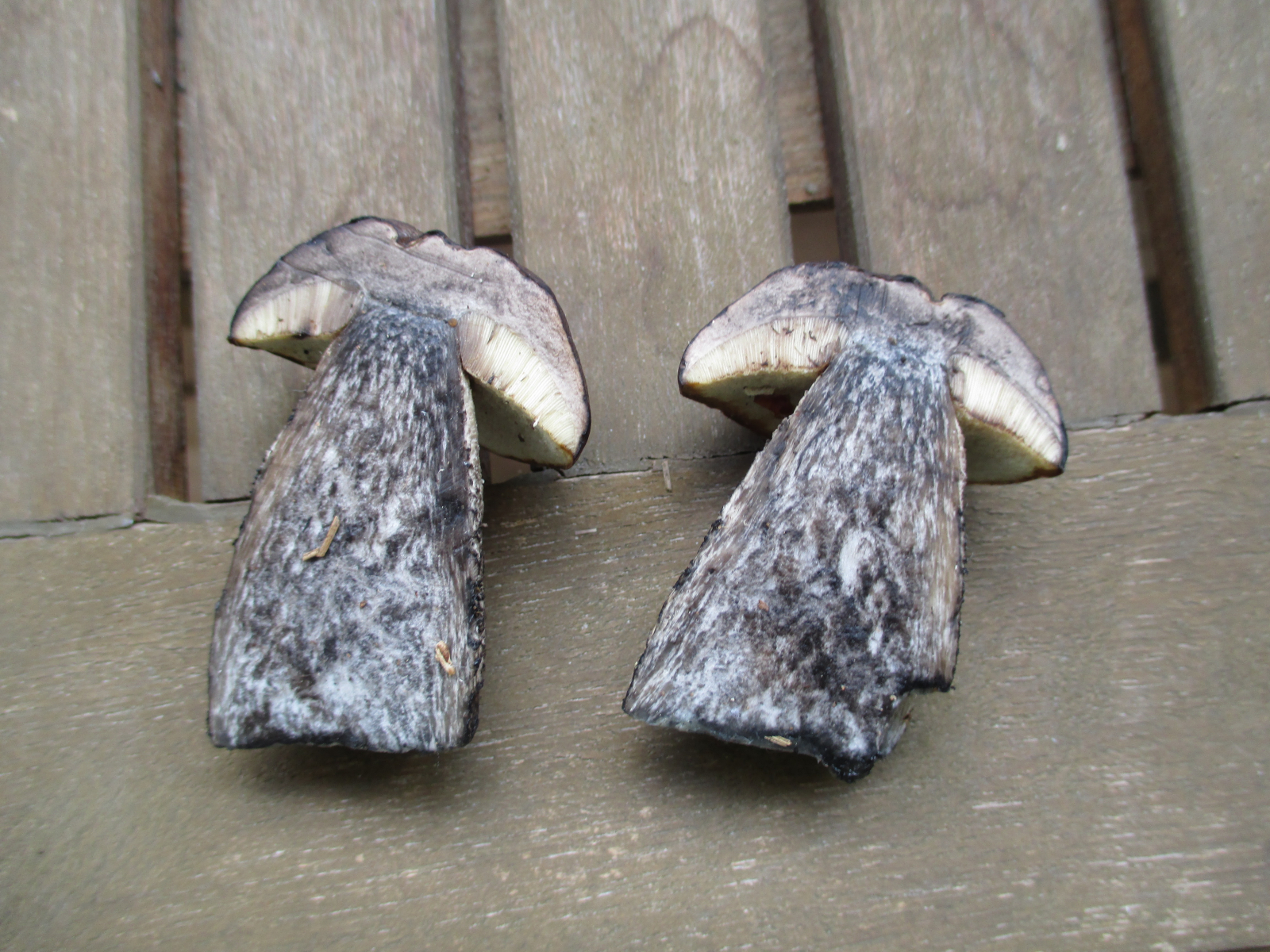 Wenn es um die Bestimmung von braunhütigen Raufüßen geht, kommt es entscheidend auf das Verfärbeverhalten nach Anschnitt an (wobei ich noch nie einen nach Anschnitt blauenden Raufuß gesehen habe, die werden wenn überhaupt violettgrau bis schwarz, manche direkt nach dem Anschneiden auch leicht rosa). Auch ist der Baumpartner sehr wichtig, den du direkt am Fundort immer erheben solltest, damit du bestimmungstechnisch in die richtige Richtung kommst. Manche Raufuß-Arten entwickeln in der unteren Stielhälfte gerne blaue bis grüngelbliche Verfärbungen, andere Arten neigen dagegen nicht dazu.