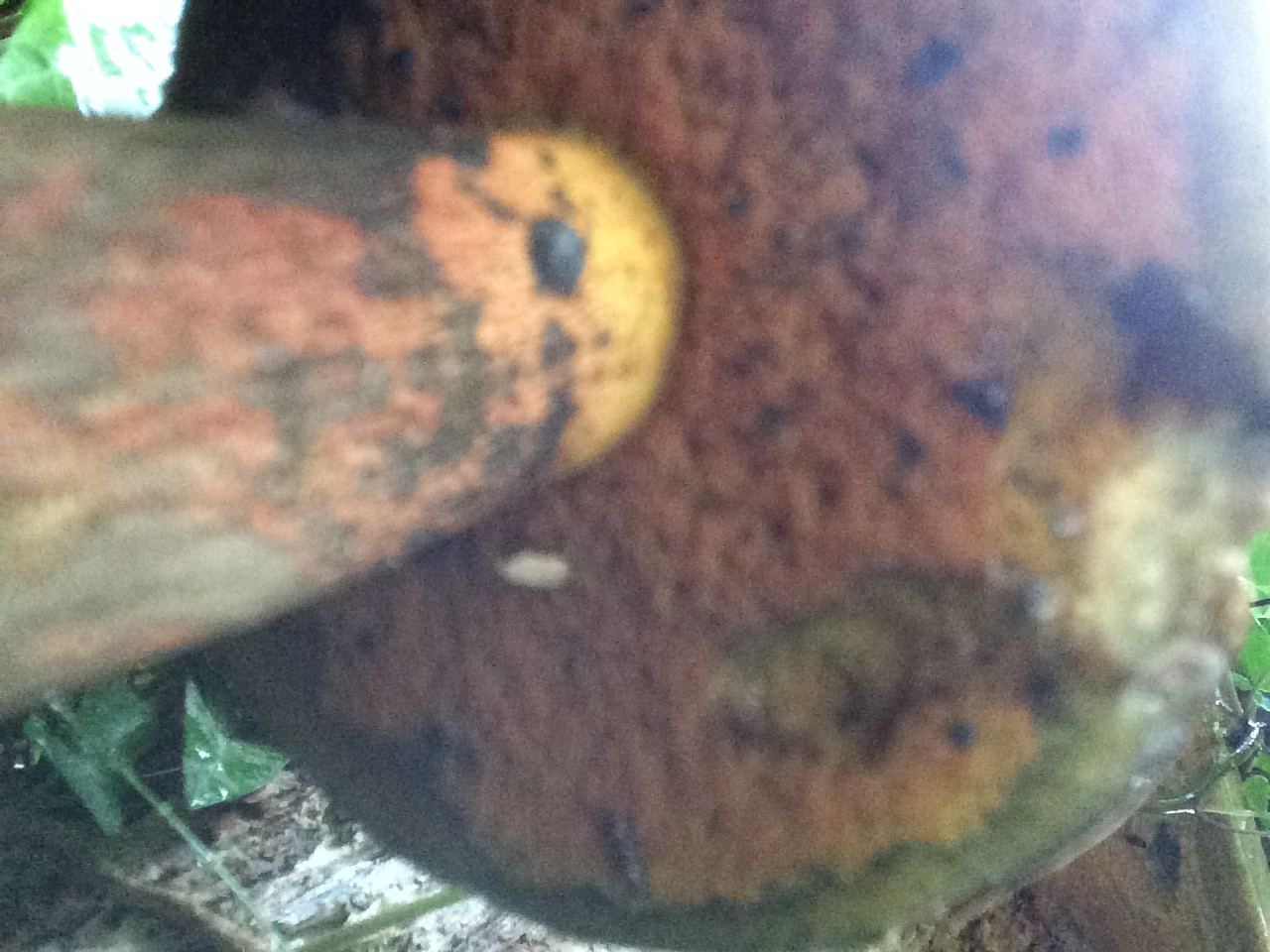 Mein erster Bestimmungsversuch: Netzstieliger Hexenröhrling (Boletus luridus), da ich auf einigen der Fotos ein Stielnetz zu erkennen glaube.