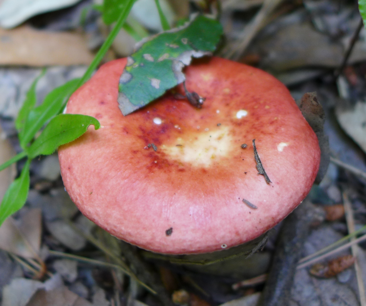 So einen ähnlichen hatte ich im Spätherbst in Ligurien schon mal getroffen ( Was gegen die Kälte). Damals war die Bestimmung unsicher, diesmal würde kalkiger Untergrund auf jeden Fall gut zum stumpfen passen, und herumgeknutscht habe ich auf Oehrlings damalige Anregung hin auch mit dem Pilzlein: Hut und Stiel schleimig.