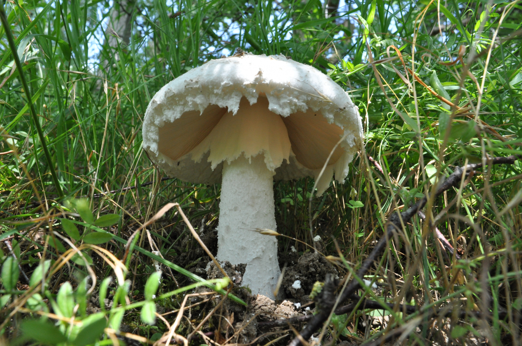 Zur Zeit wächst in unserem Garten in Hägglingen eine Kolonie von weissen recht grossen Lamellenpilzen mit zuerst deutlich orangen Lamellen, beringt, die Hüte und die Stiele sind beschuppt, die Lamellen haben mich an einen Perlpilz erinnert, aber alles andere passt nicht! Die Pilze wachsen zur Zeit sehr schnell, die grössten Hüte sind schon Handtellergross. Der Geruch ist unauffällig. Die Lamellen der grossen Pilze sind wieder fast weiss.