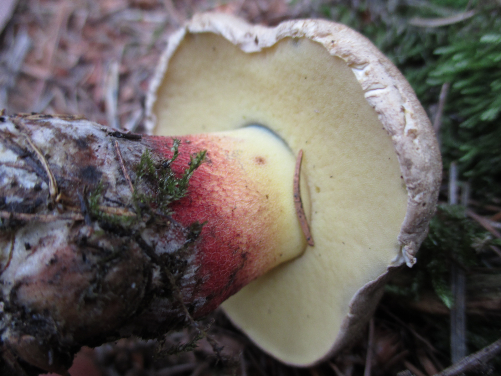 Könnte es sich um den Schönfuß-Röhrling bzw. Caloboletus calopus handeln?