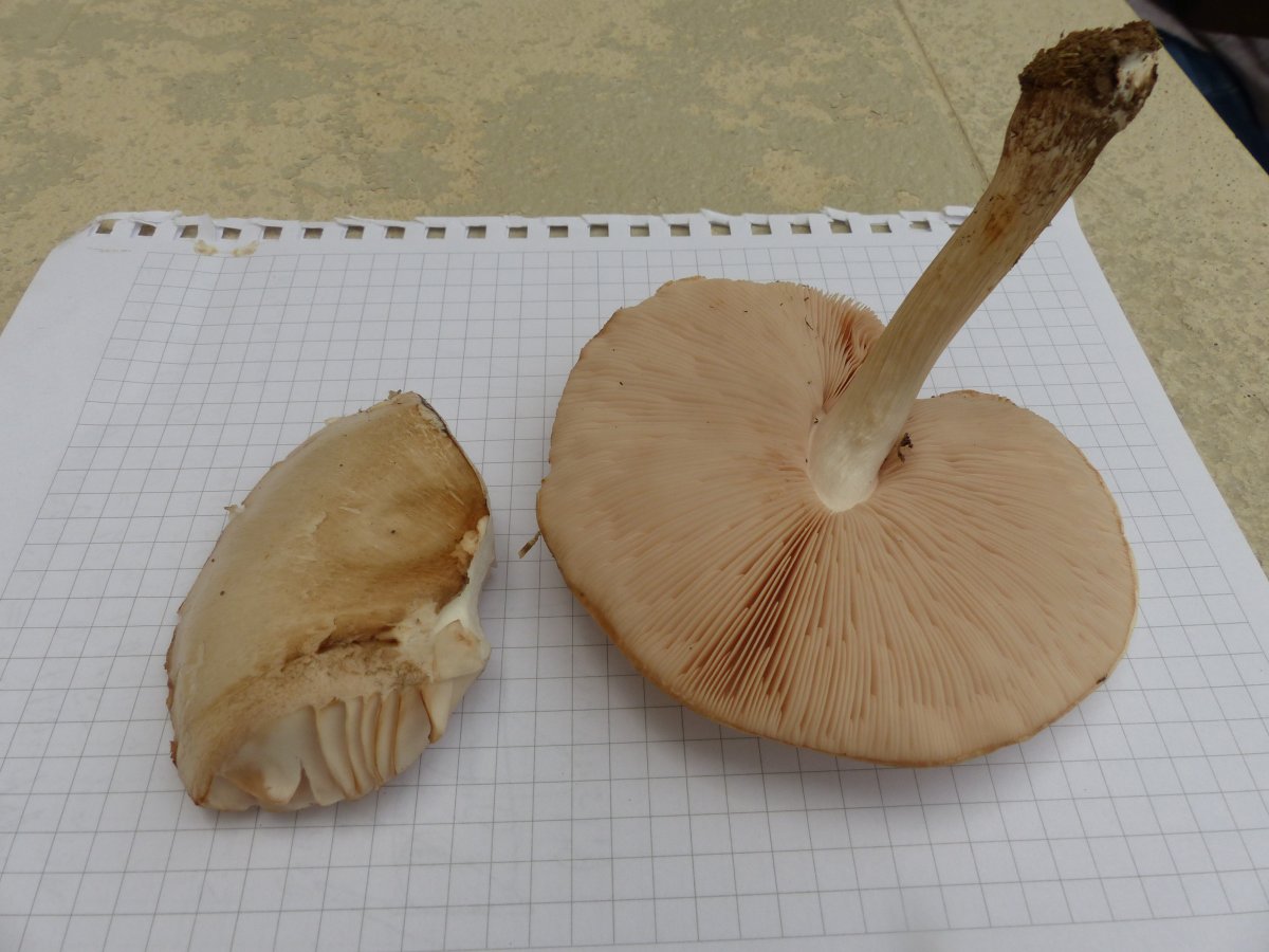 Lamellen: frei, eng, untermischt, mit rosa Ton; Schneiden: glatt