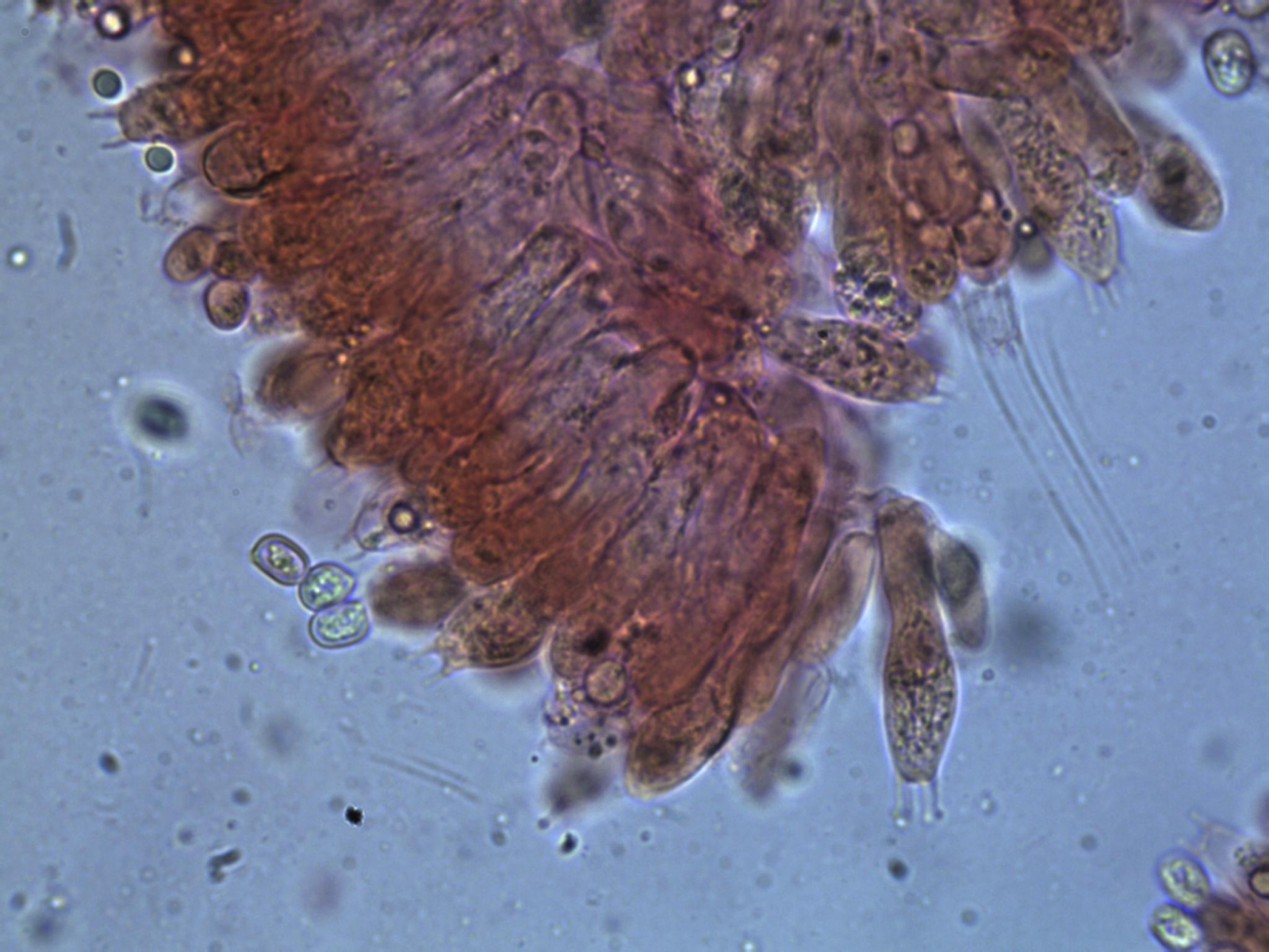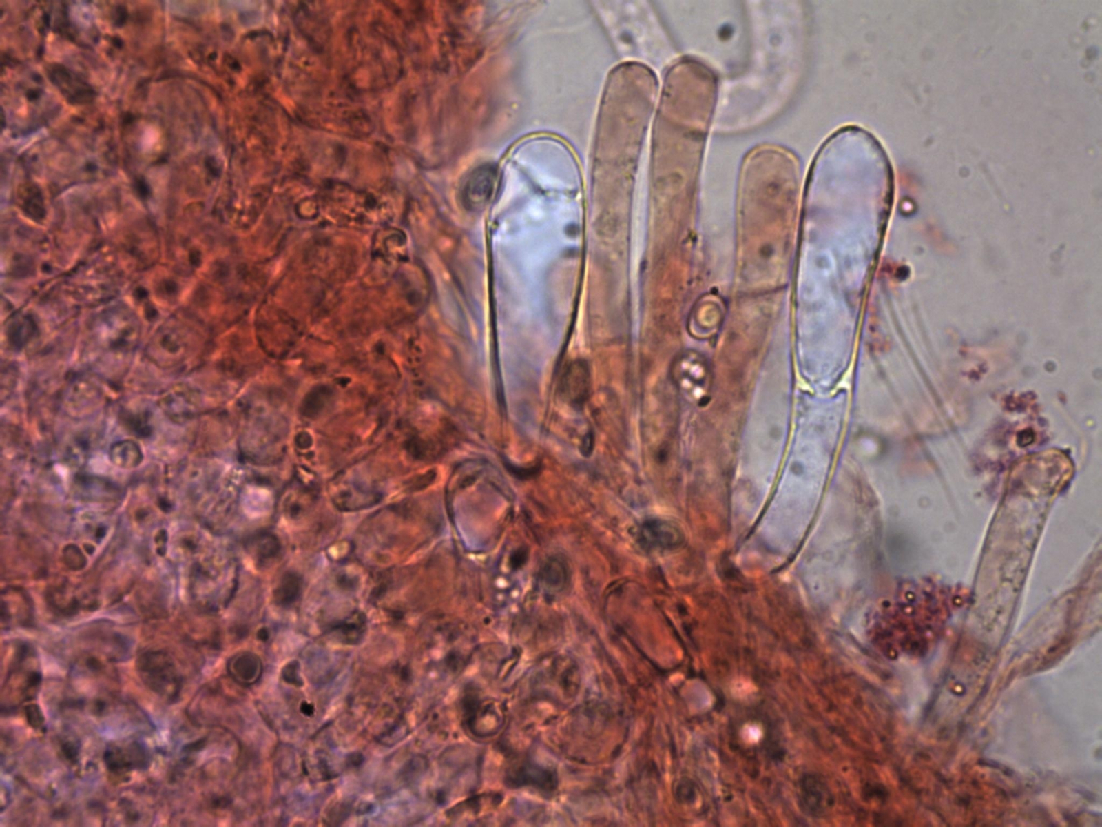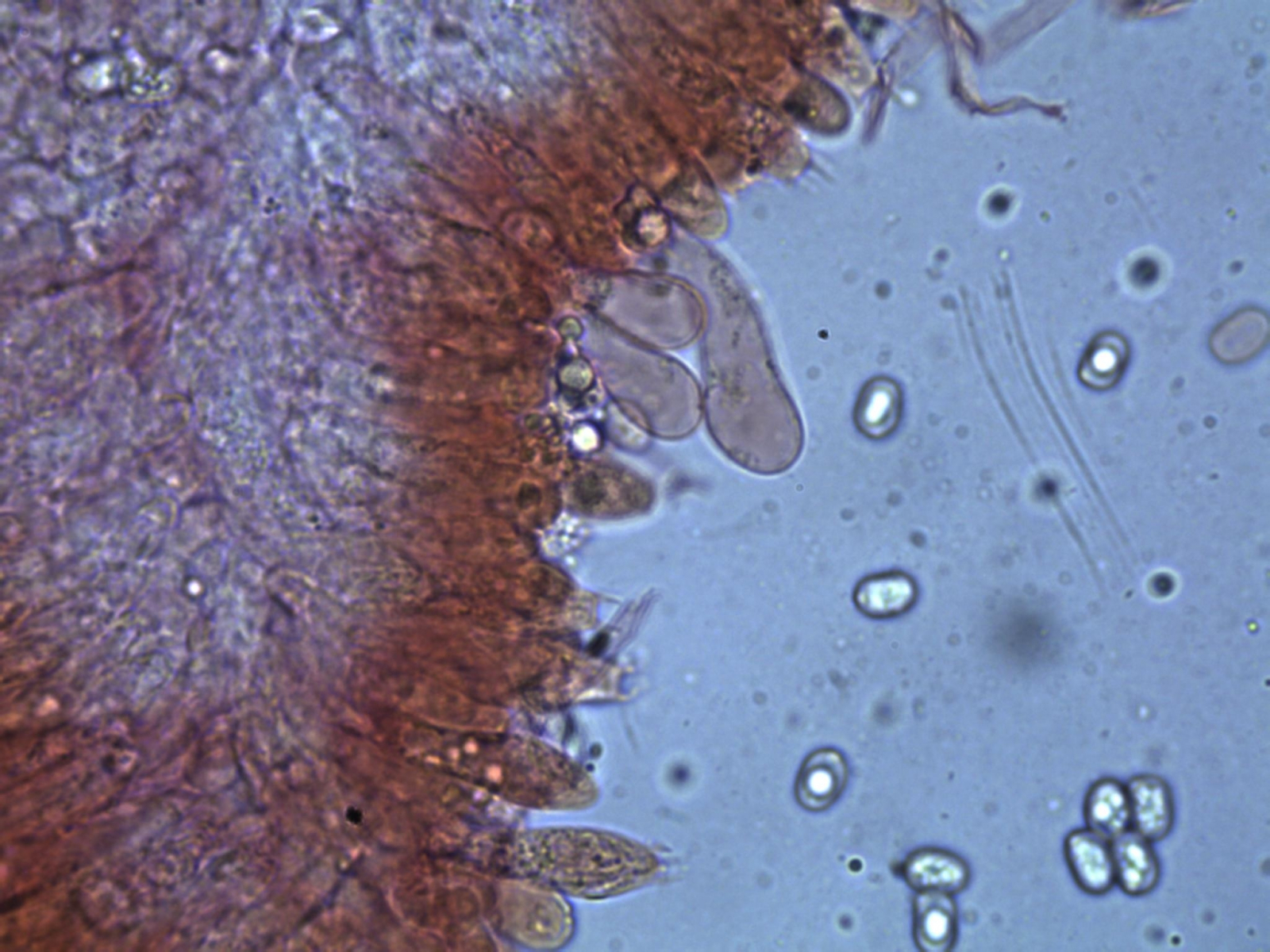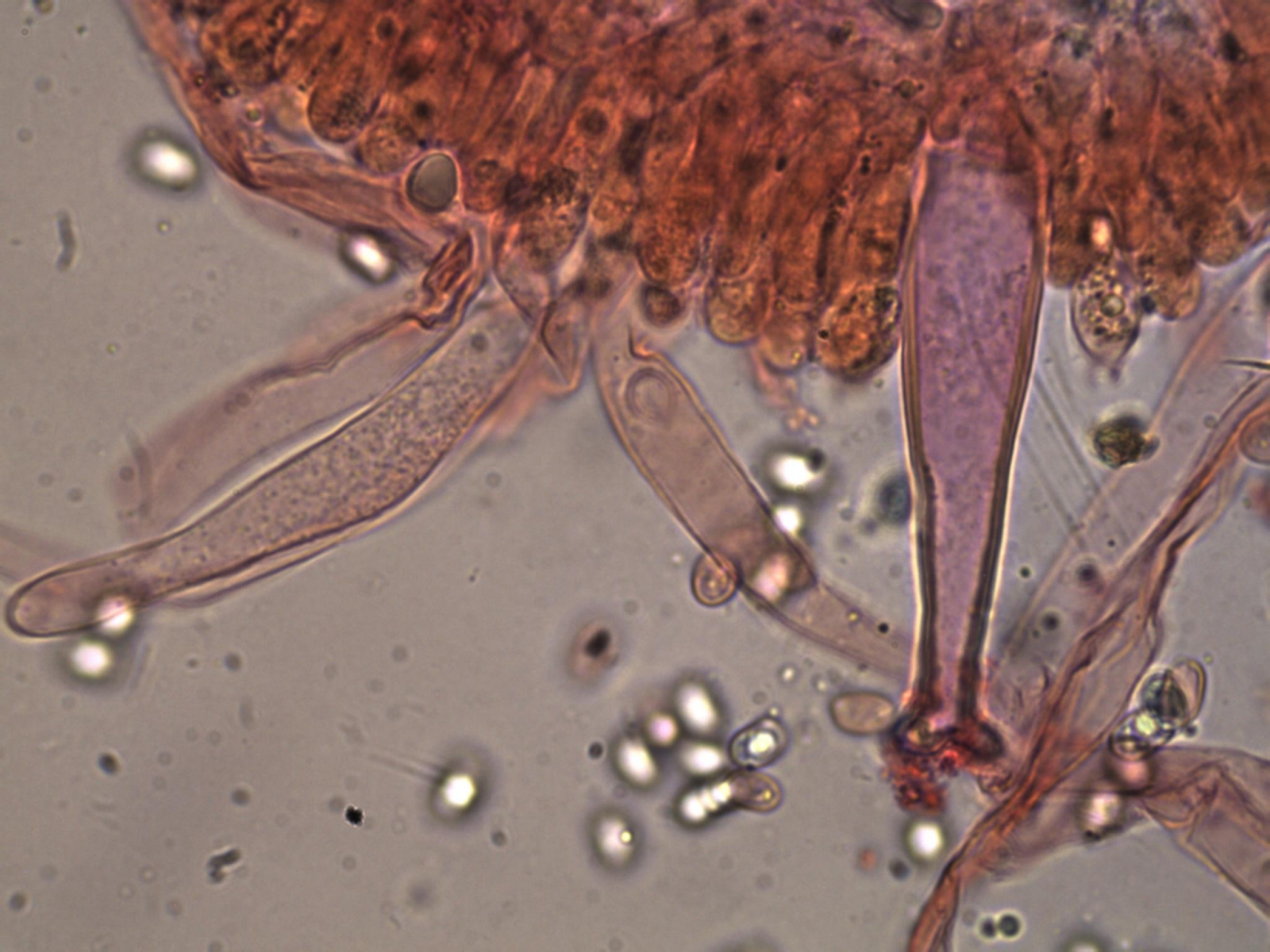 weitere Zystiden: keulig, und einige einige lange zylindrische