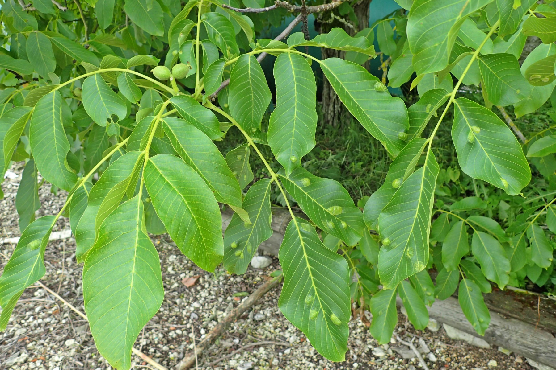 Endlich Pilze, dachte ich beim Anblick dieser Walnussblätter und hoffte auf eine Taphrina oder etwas ähnliches.