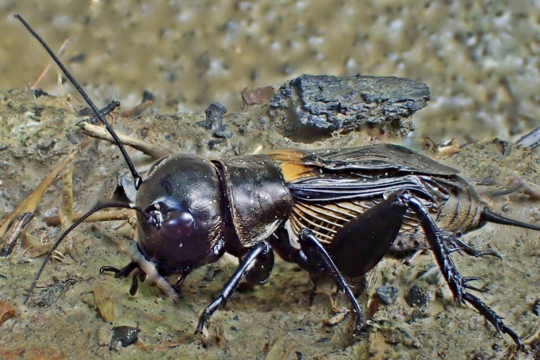 Das einzig sichtbare Wesen in diesem Morast war eine Feldgrille (Gryllus campestris), die sich ebenfalls mühsam dahin schleppte, was mir die Gelegenheit für ein Foto gab.