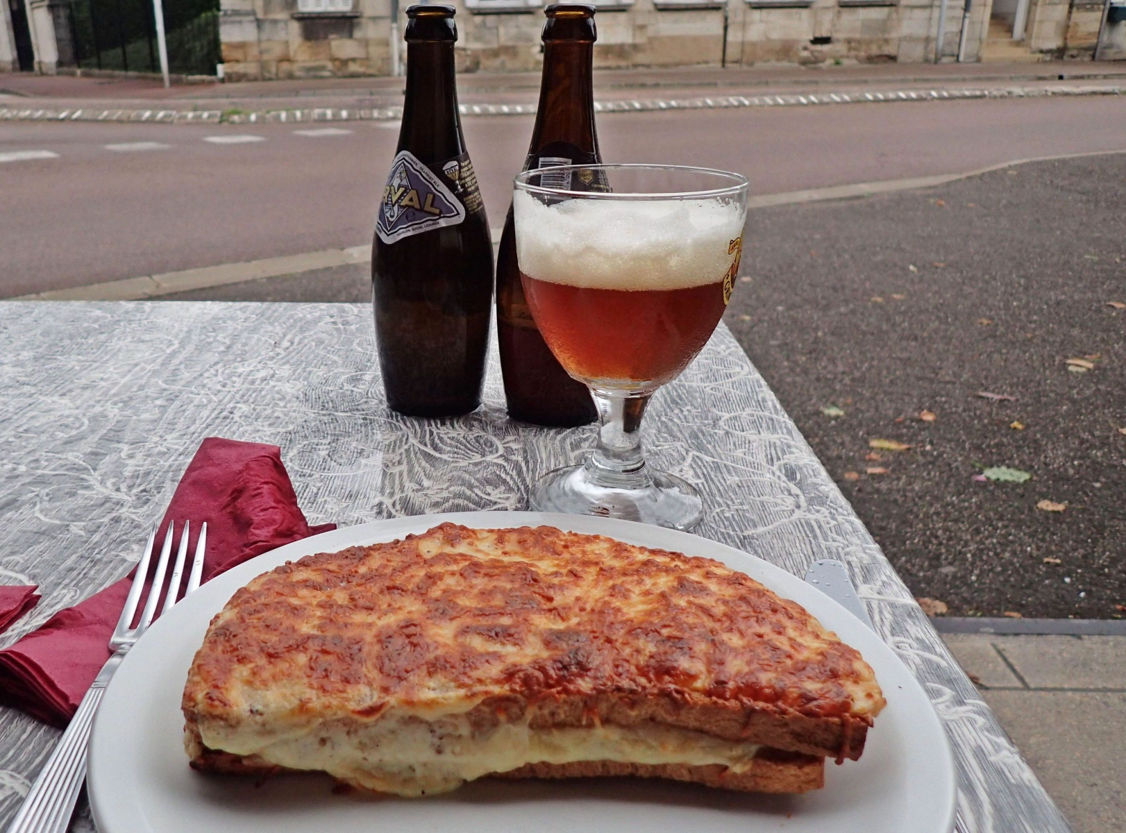 Fastfood auf französisch: Croque Monsieur in einem Dorfgasthof, hier mit einem belgischem Trappistenbier veredelt - einfach lecker!