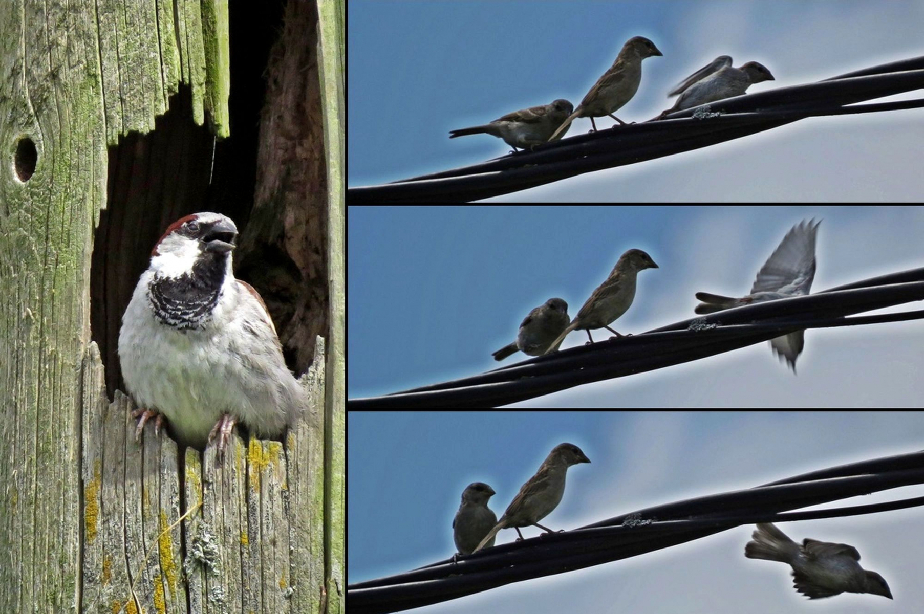 Direkt an unserem Grundstück stand ein „löchriger“ Telefonmast. Hier hatte sich eine Spatzenfamilie einquartiert. Sie tschilpten von früh bis spät. Gewöhnungsbedürftig!