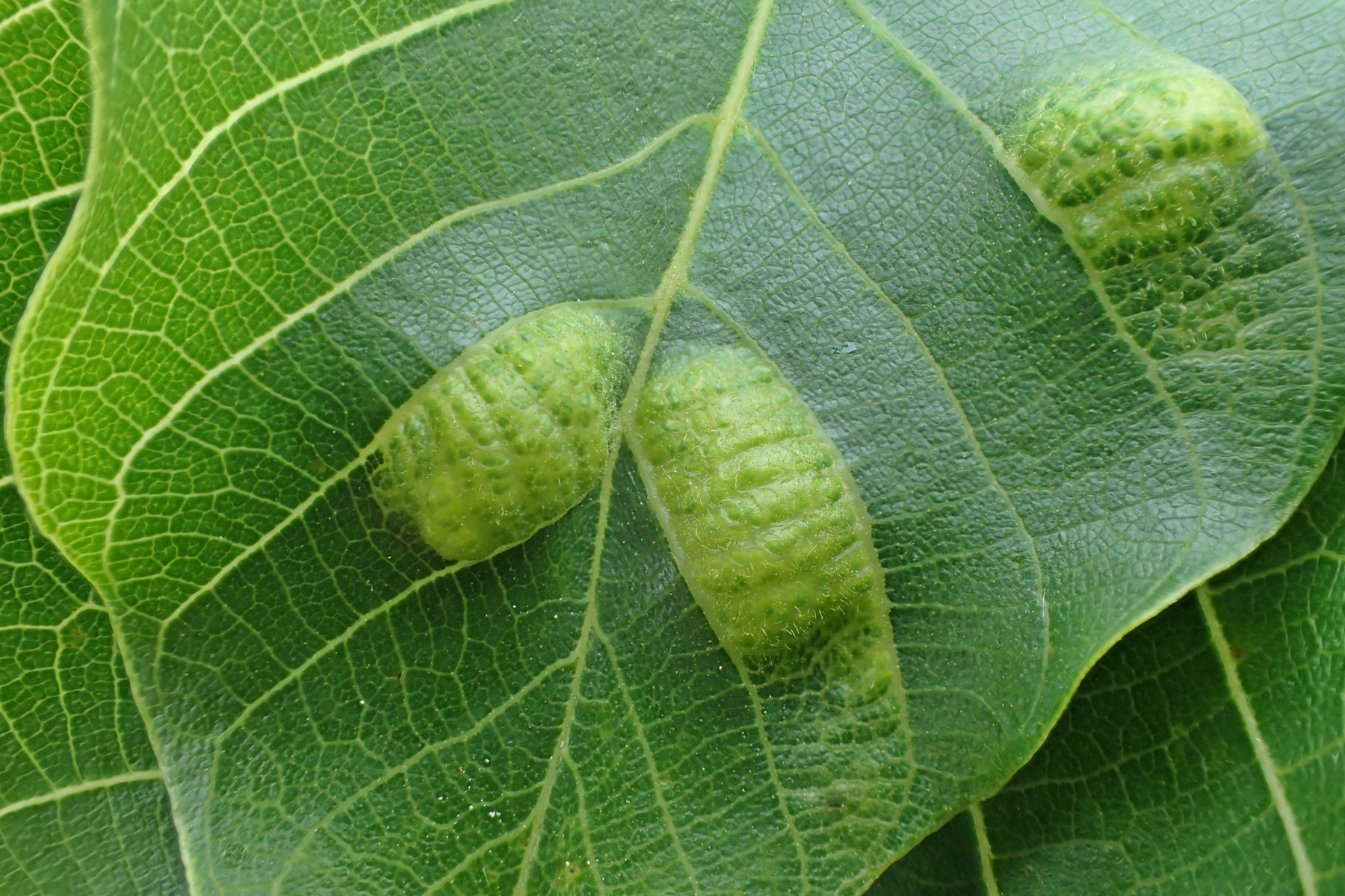 Doch stellten sich die Blattverformungen letztlich als Gallen der Walnuss-Gallmilbe heraus. Die 0,2 mm winzigen Milben sind mir leider nicht vor die Linse gekommen.