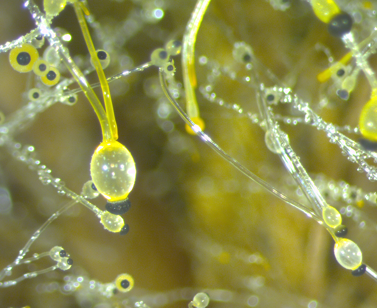 Was mich wundert: Die Sporangien des Pilobolus sind unterschiedlich groß. Sind es dann unterschiedliche Arten oder kann eine Art verschieden große Sporangien schleudern?