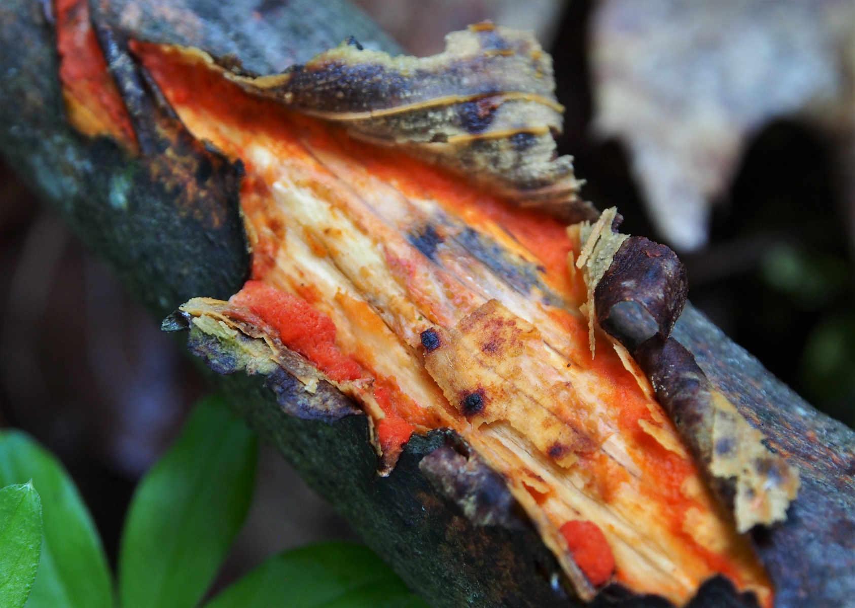 In einer dunklen Waldecke (Fotos nicht so gelungen) wollte ich schauen, was aus der Zinnoberroten Tramete geworden ist, die ich im frühen Frühjahr schon mal entdeckt hatte. Sie ist noch da und bekommt gerade Nachwuchs: