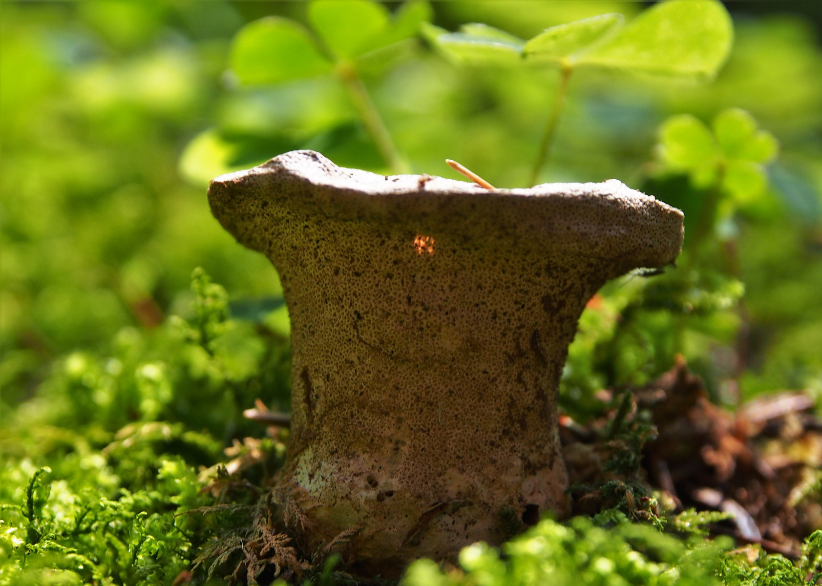 Hier einer, wo das Sonnenlicht sich durch das Sporenloch an der Pilzwand "spiegelt". Wie heißt eigentlich das Loch, das hat doch bestimmt einen Namen?