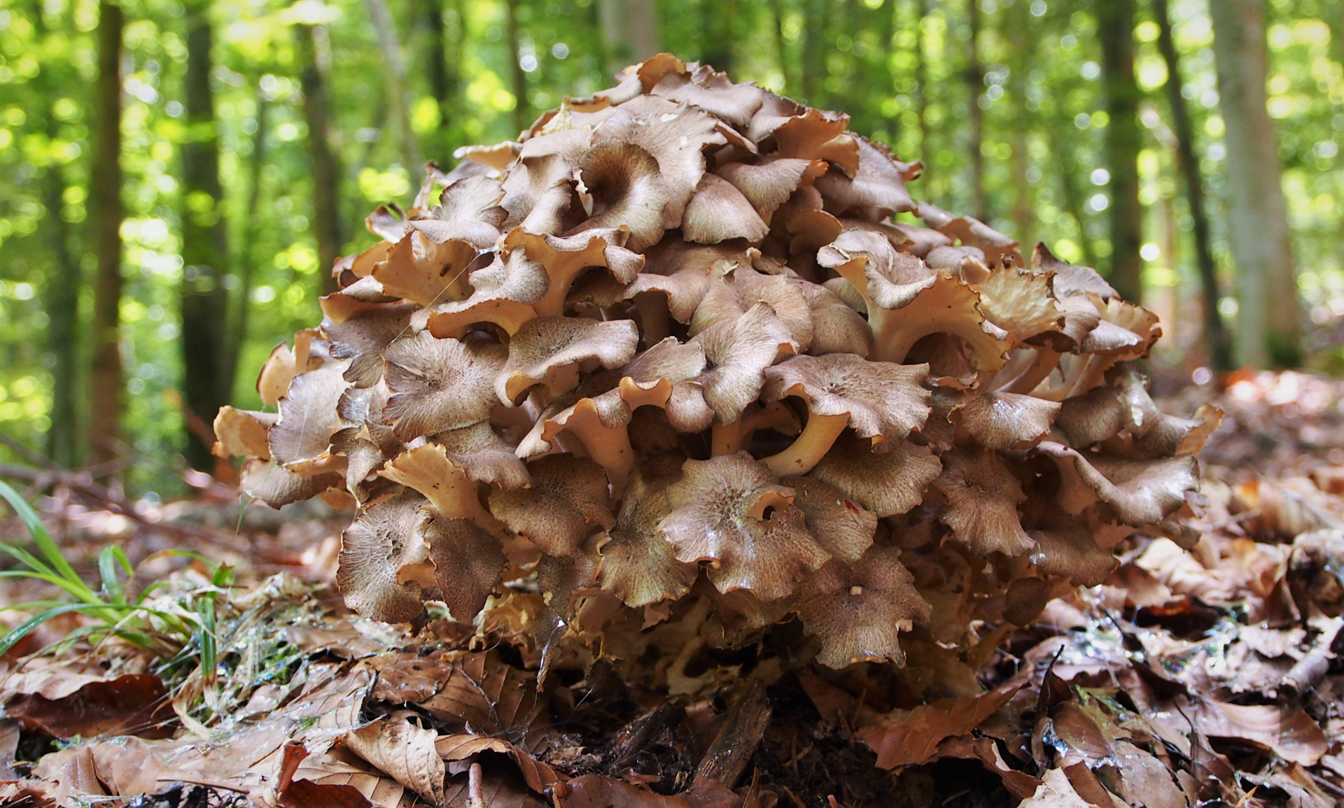 Weiter ging’s zu den Pfifferlingsstellen im Buchenwald … Auch hier fast tote Hose, nur hie und da die Gewissheit, dass die Pilze noch da sind, aber einfach noch Wasser brauchen.