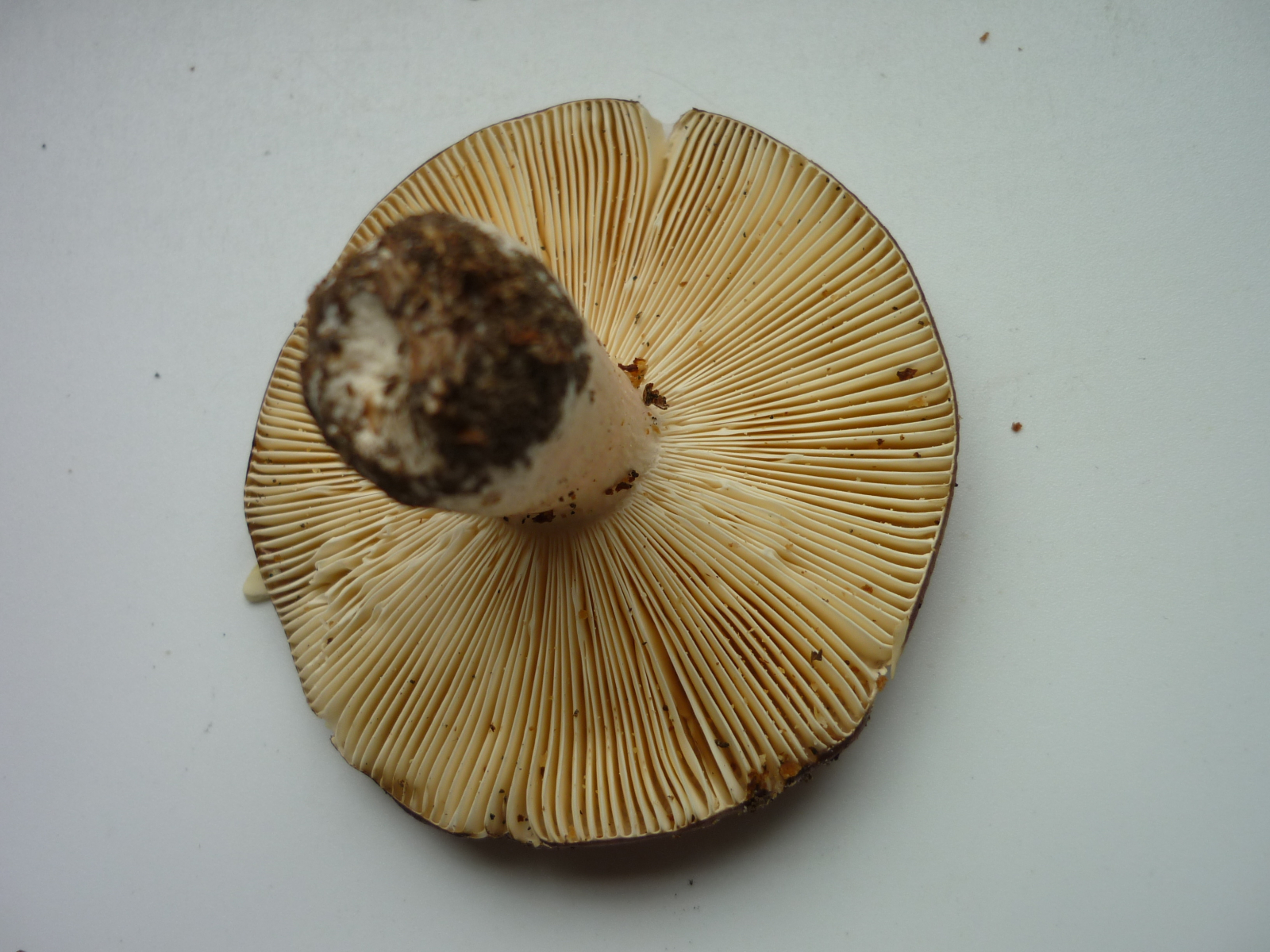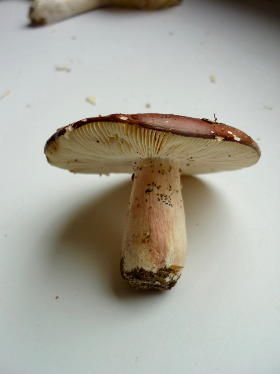 Bei diesem Kandidaten bin ich mir sehr unsicher. Ich habe gelesen, dass der Stachelbeertäubling kalkhaltige Böden bevorzugt. Hier sind die Böden sauer. Seltsam fand ich den Sporenabwurf, aber