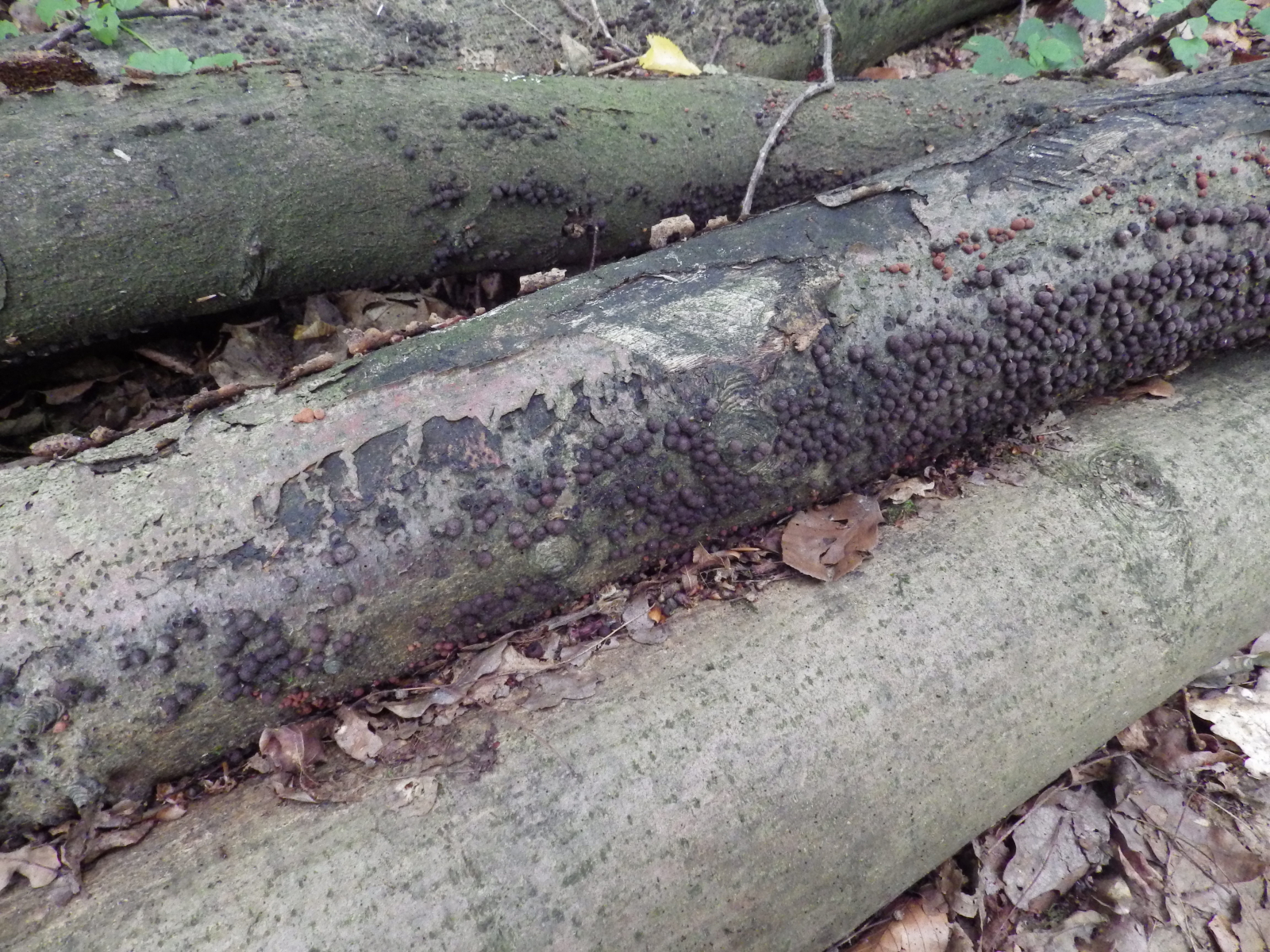 Die PIilze vom zweiten Fund waren alle trocken und haben kaum gerochen. Ich habe die kleinen dunklen, fast schwarzen und auch die roten "Warzen" ohne Probleme vom Baumstamm nehmen können, habe leider vergessen ein Foto von der Unterseite zu machen, die war nicht viel anderes als der Rest der Pilze.