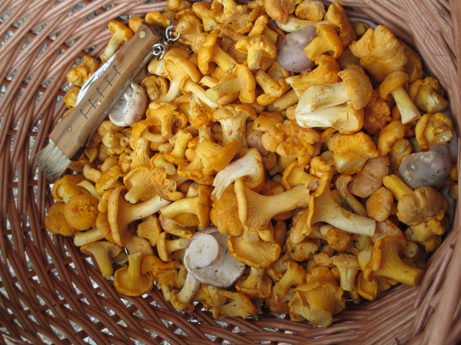 Eierschwammerl, Cantharellus cibarius s. l., wohin man schaut. Alles gelb.