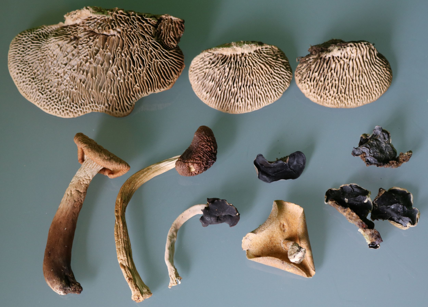 • Alle Pilze und Pflanzenteile sollen gut getrocknet sein. Feste holzige Porlinge, Trameten, Schichtpilze etc sind dafür natürlich viel besser geeignet als die meisten Lamellenpilze, die sich beim Trocknen grausam schrumpfen.