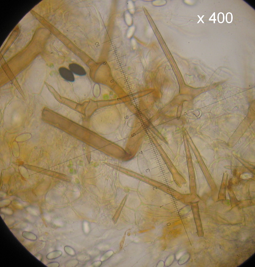 Die Paraphysen sind leicht keulig verdickt mit orangem Inhalt.