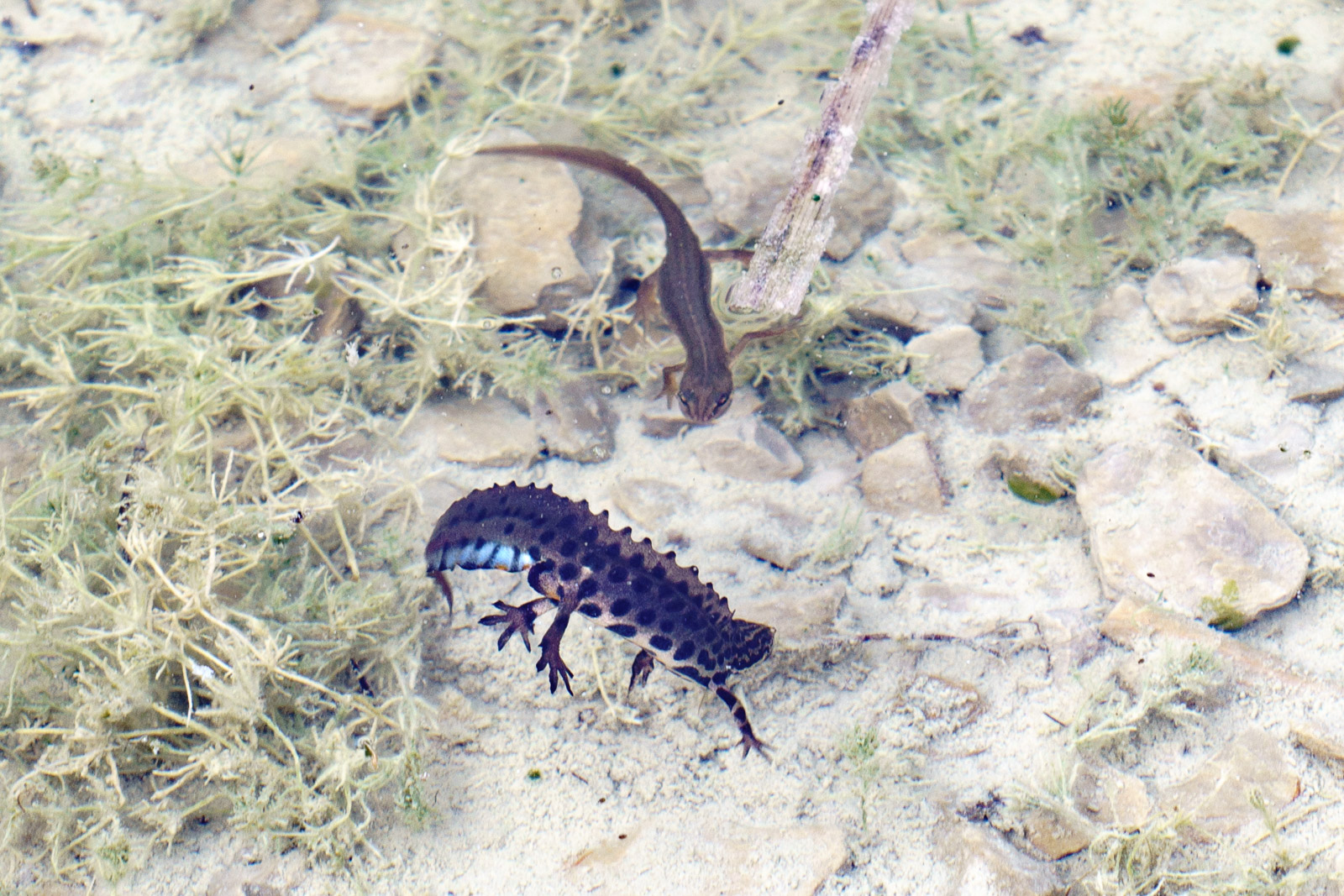 Ich habe dann gleich noch einen zweiten Spaziergang zu den Bergmolchen gemacht, und einen Teil des Gewimmels abgefischt. Die Molche wurden an einem nahe gelegenen kleinen Teich ausgesetzt.