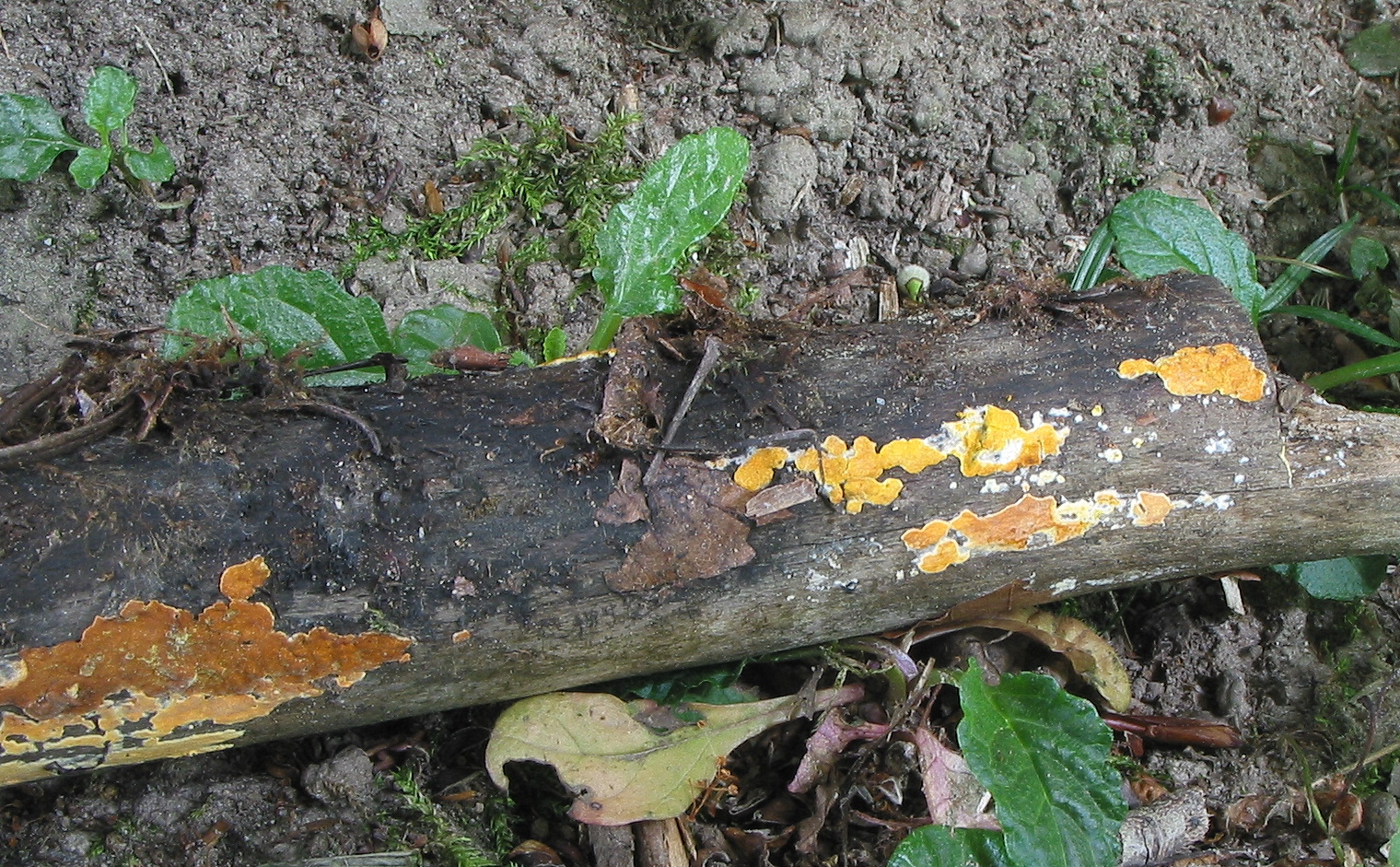Gleich neben diesem Ast war noch ein alter Stamm auf dem gelbe haarige Apothecien zu sehen waren.