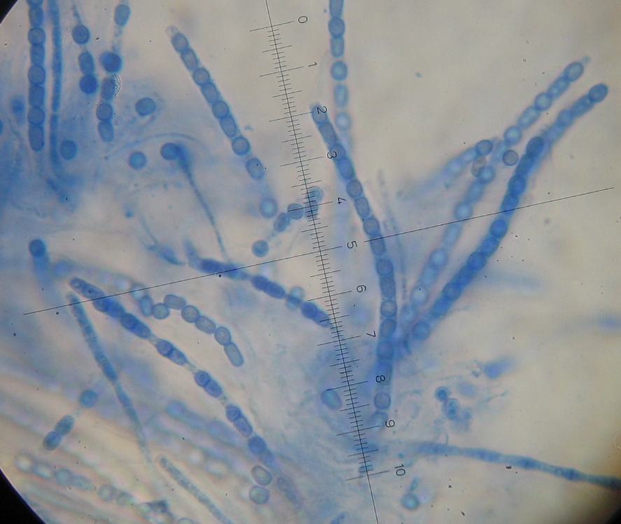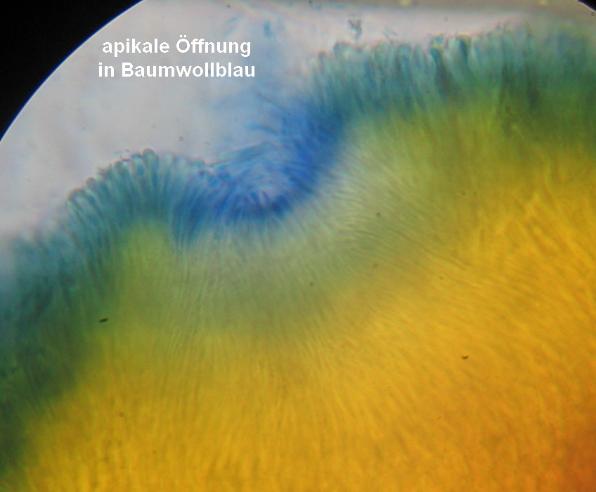 apikal rundlich 2-3µ, der untere Sporenteil eher zylindrisch bis 4-5 x 2-3µ