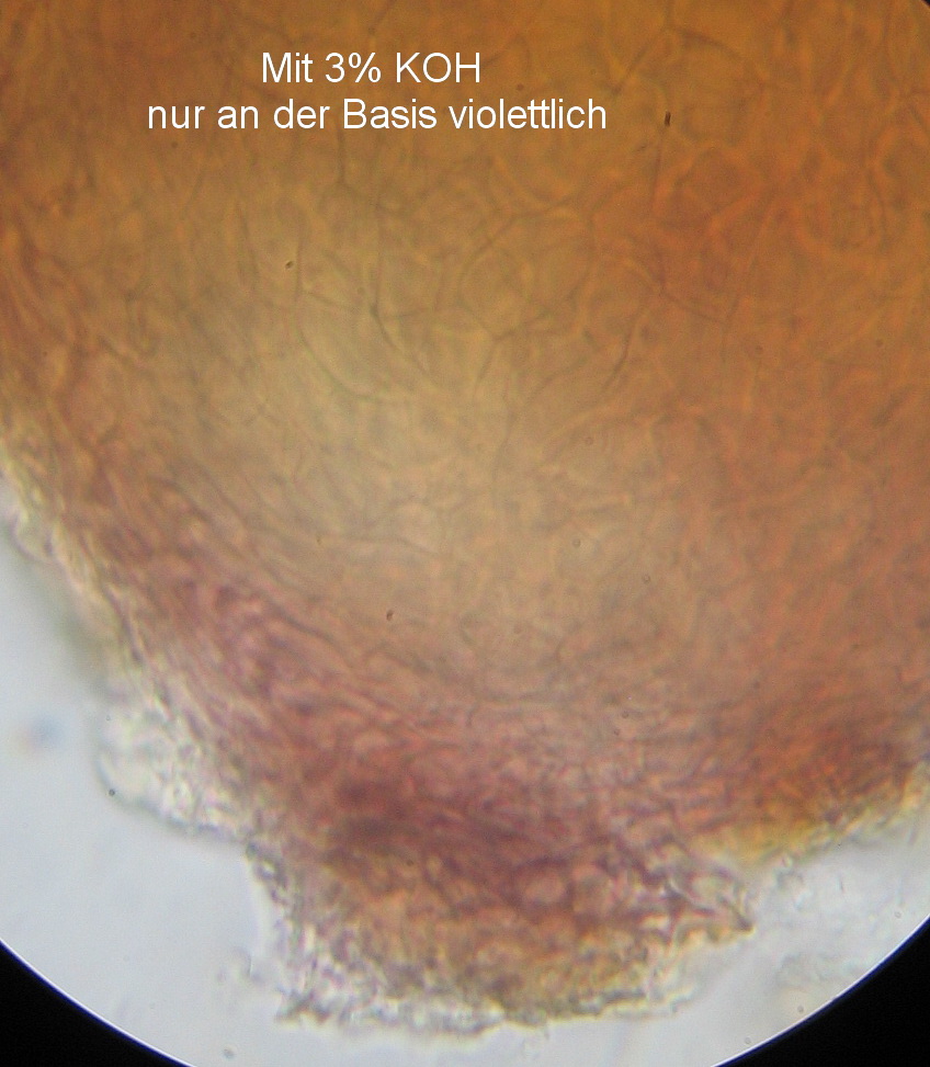 Mit KOH 3% konnte ich nur an der Basis eine violettliche Reaktion feststellen