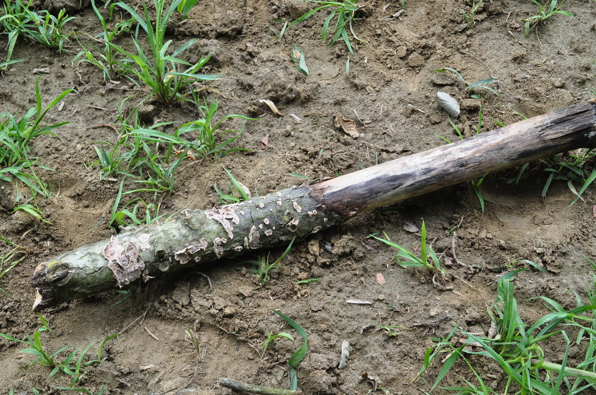 Gestern habe Fundort wieder nachgeschaut und auf gute glück habe gleiche Pappelast mit Fruchtkörper wieder gefunden aber mit etwas getrocknete Fruchtkörper . Ich hoffe das Fruchtkörper für Mikroskopieren noch immer gut ist und habe Exsikkat - Beleg mitgenommen .