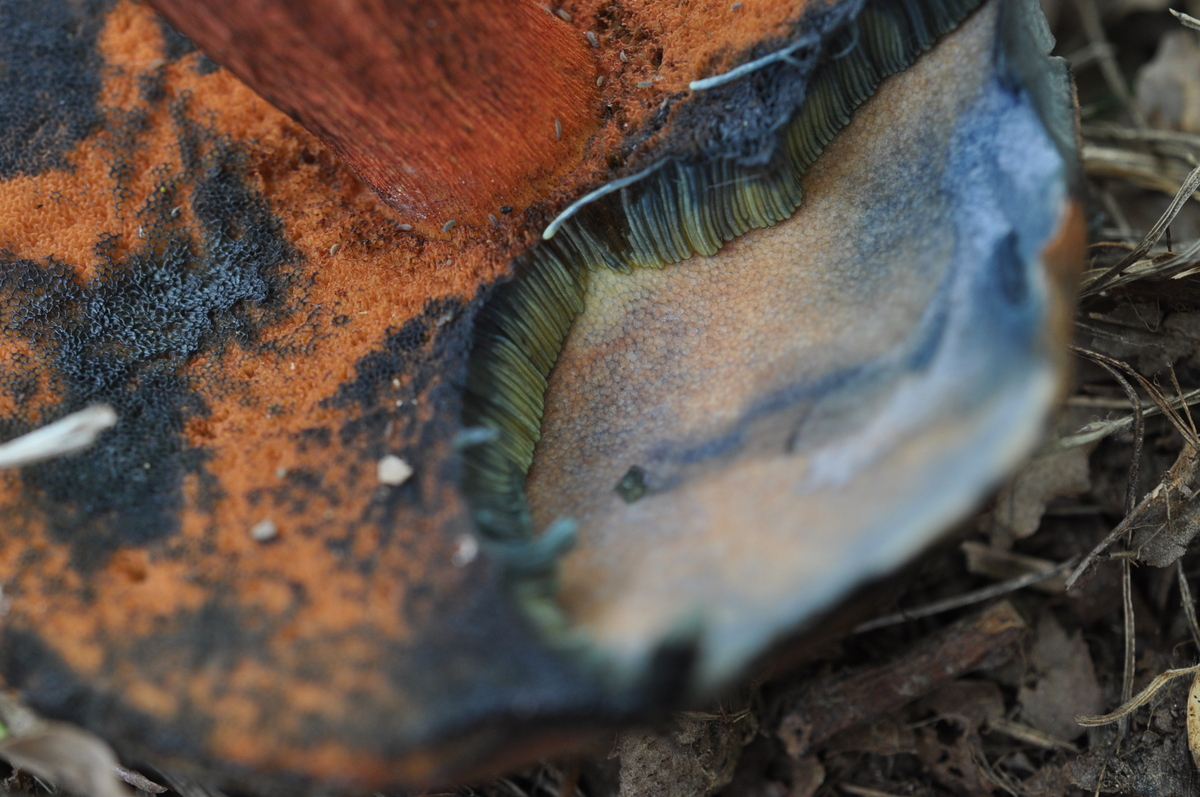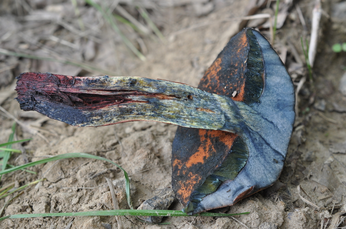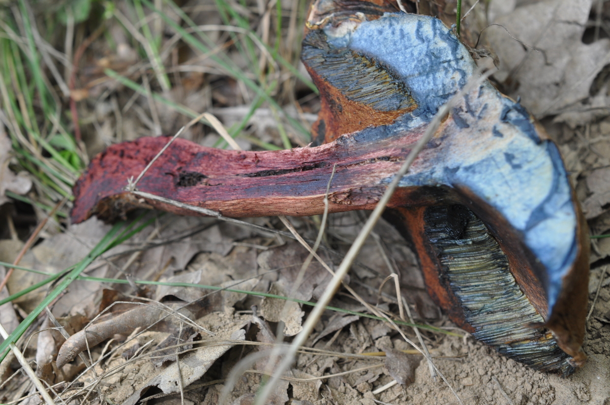 Ich habe diese 3 Pilze neben Amanita rubescens (sieche Fundort Beschreibung von zweites Pilz) gefunden . Für ein Suillellus luridus etwaas ungewöhnlich , oder ? Ist das S. mendax ?