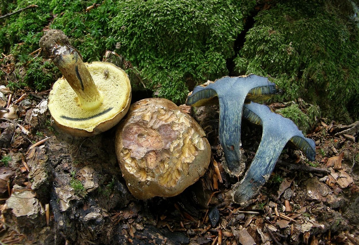 Bei Röhrlingen sind Schnittbilder schon eichtig, aber halt von ganzen Fruchtkörpern. Das würde dann idealerweise so aussehen, wie zB hier beim Schwarzblauenden Röhrling:(*) Den Vertipper habe ich leider zu schnell bemerkt und geändert, aber wer gerne über so wass Schmunzelt, bitteschön: Eingrunzen.