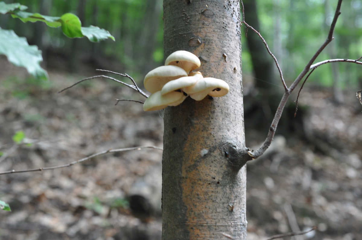 1. Substrat noch stechende aber tote junge dünne Buche . Es gehet um sehr kleine Fruchtkörper aber nicht so jung . Geruch leicht angenehm , Kostprobe habe keine gemacht . Auf erste blick ein Pleurotus (Pleurotus pulmonarius mein erste Idee) aber irritiert mich große und Hutoberfläche . Habe Exsikkat wenn so interessant ist .