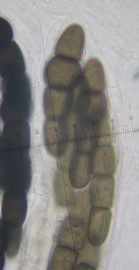 Sporen (65)70-84x 13-18µ, die 2 te Zelle kurz +breit, die Endzellen teils zugespitzt.